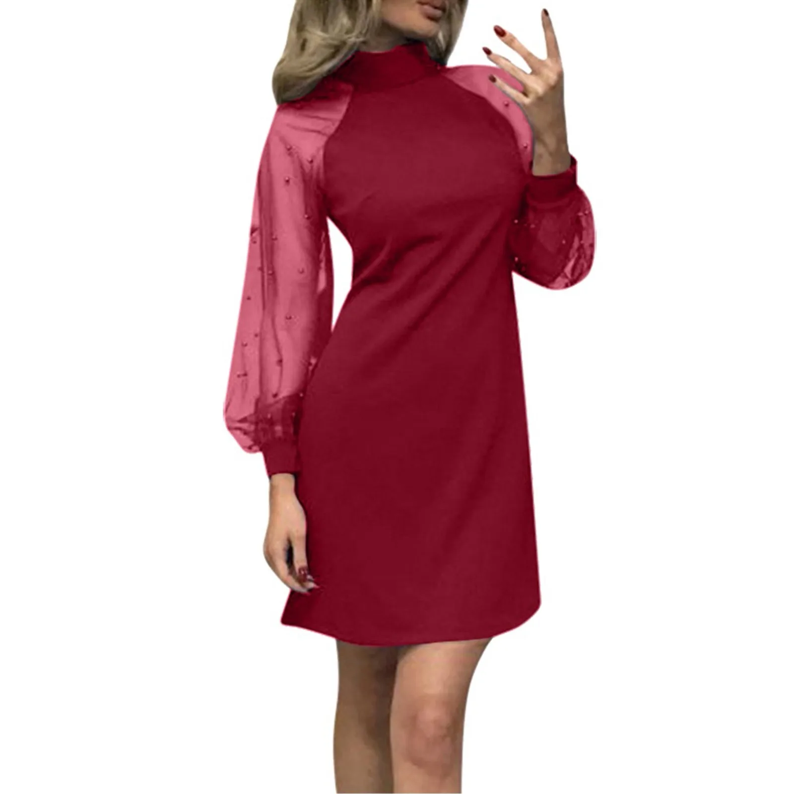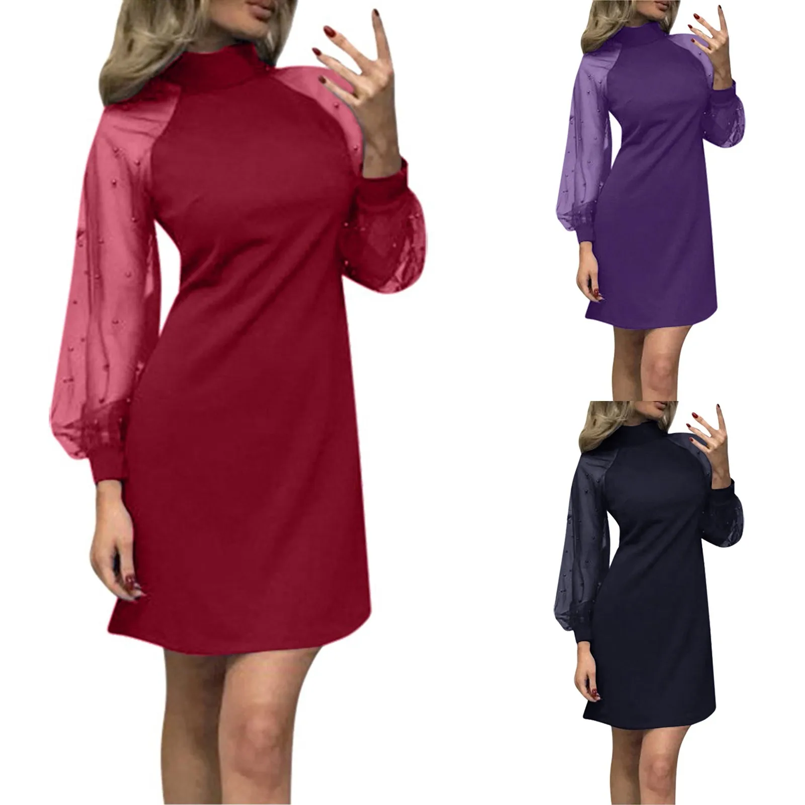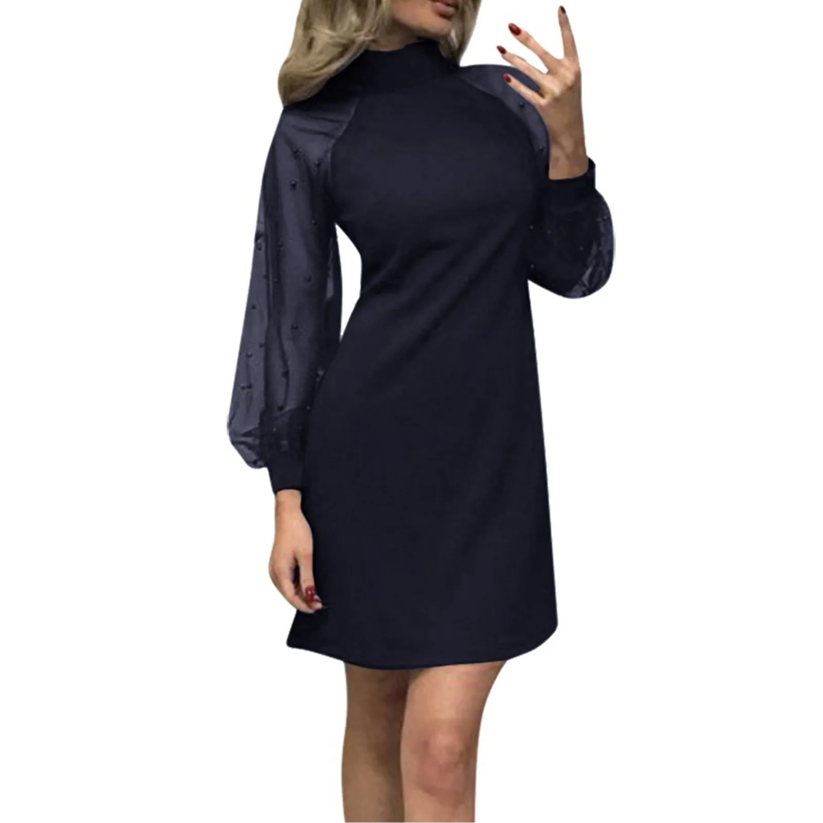 Женское Сетчатое платье с длинным рукавом и жемчугом, вечерние мини-платья трапециевидной формы