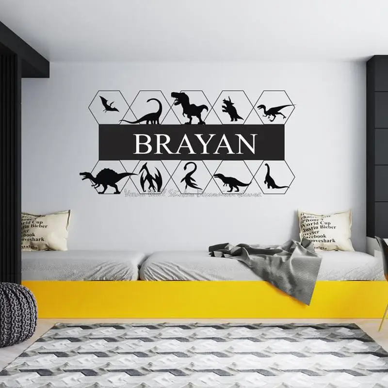 Виниловые наклейки на стену с именем динозавра, наклейки на стену для комнаты мальчика, девочки, детской комнаты, детского сада, дома, спальни, настенное украшение, 5