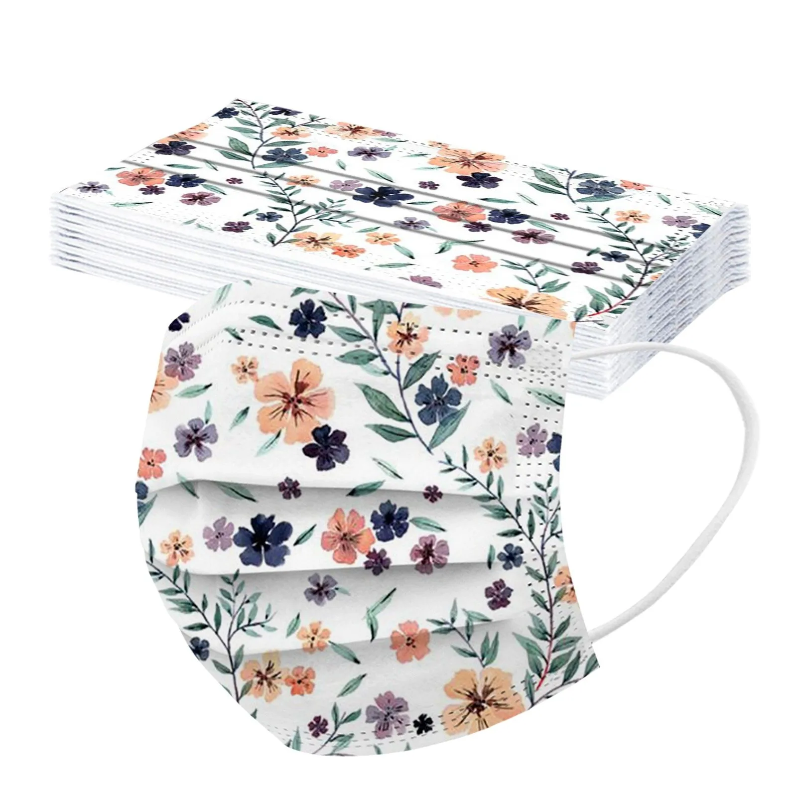Одноразовые маски для взрослых, классический дизайн с цветочным принтом, 3-слойная дышащая удобная Защита лица
