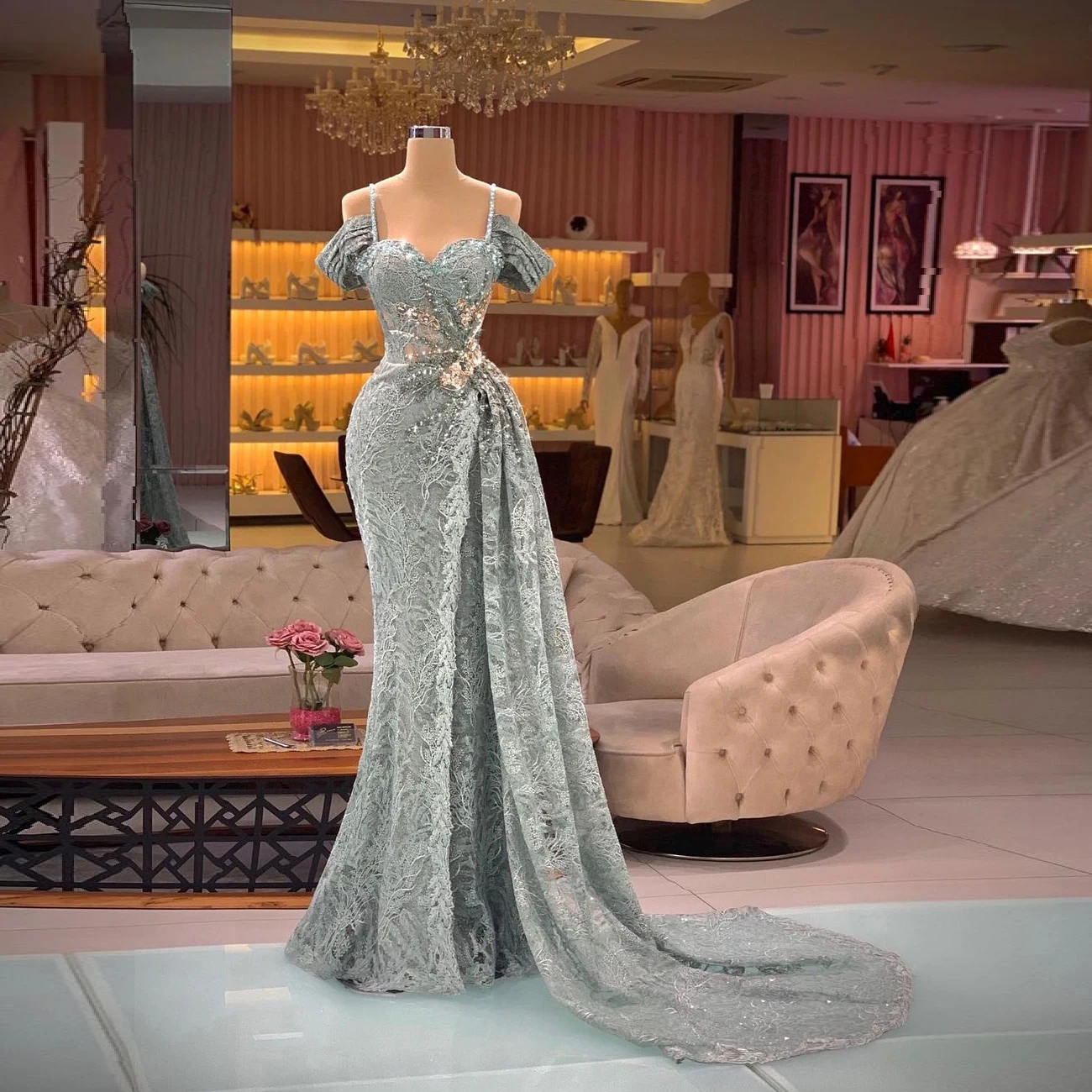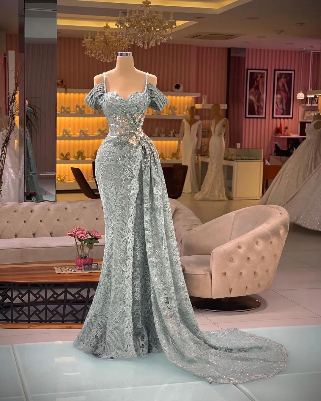 Элегантное платье-Русалка для выпускного вечера с длинным шлейфом и кружевной аппликацией