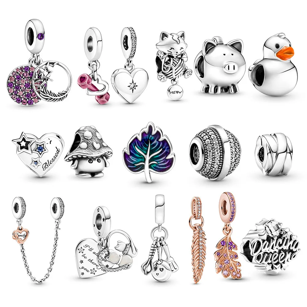 2021 новые серебряные очаровательные блестящие циркониевые Пальмовые Листья Подвеска бусина кошка подходит для оригинального браслета и ожерелья Pandora для женщин ювелирные изделия