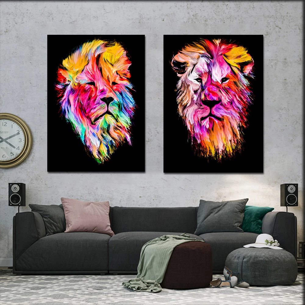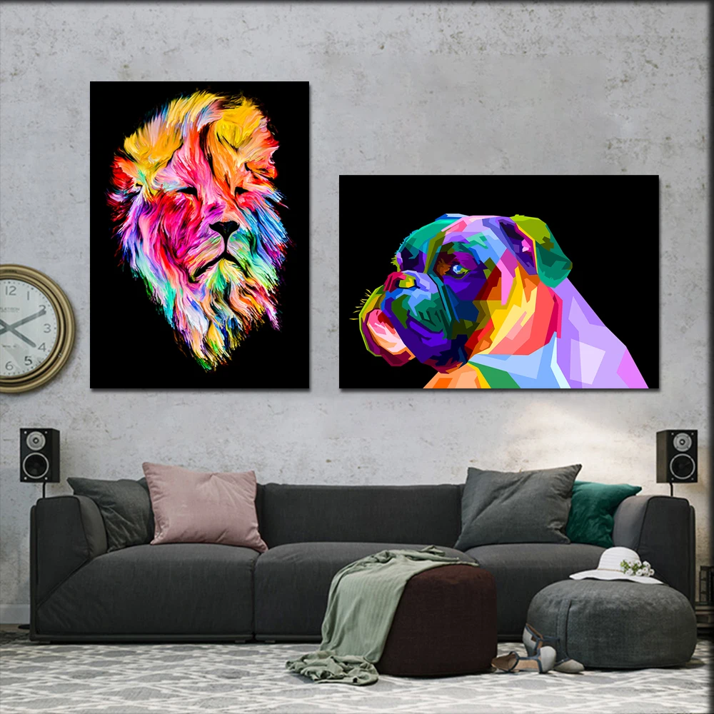 Абстрактная Настенная картина с животными, львом, собакой