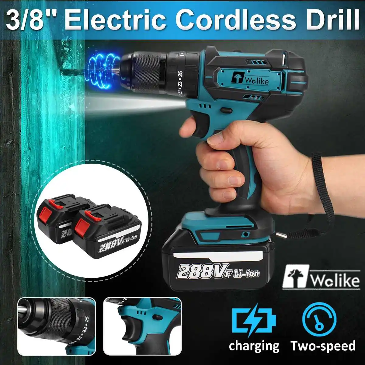 Электрическая ударная Аккумуляторная дрель, 18 в, светодиодный светодиодсветильник кой, Беспроводная электрическая отвертка, дрель 38 дюйма, бесщеточная электрическая дрель