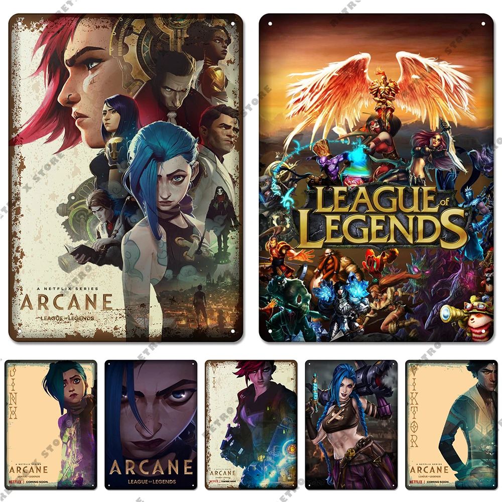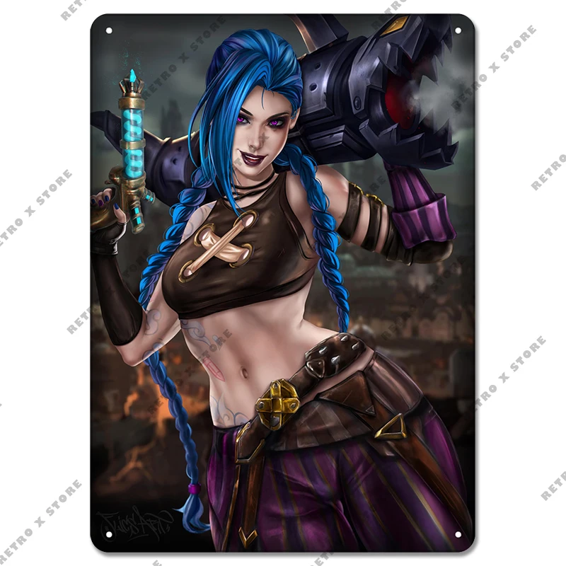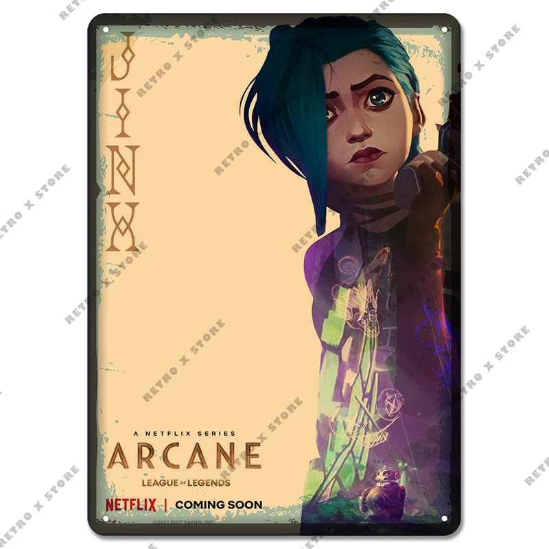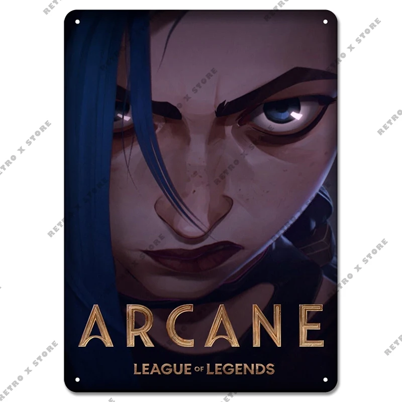 Arcane Лига Легенд, ТВ жестяной знак, игровые персонажи Jinx, металлический постер, настенное искусство, табличка, домашний декор для игровой комнаты, Интернет-кафе