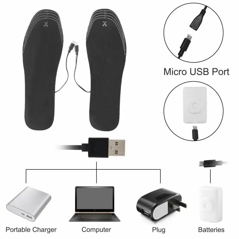 Стельки унисекс с подогревом от USB, теплые моющиеся, с электроподогревом, зимние