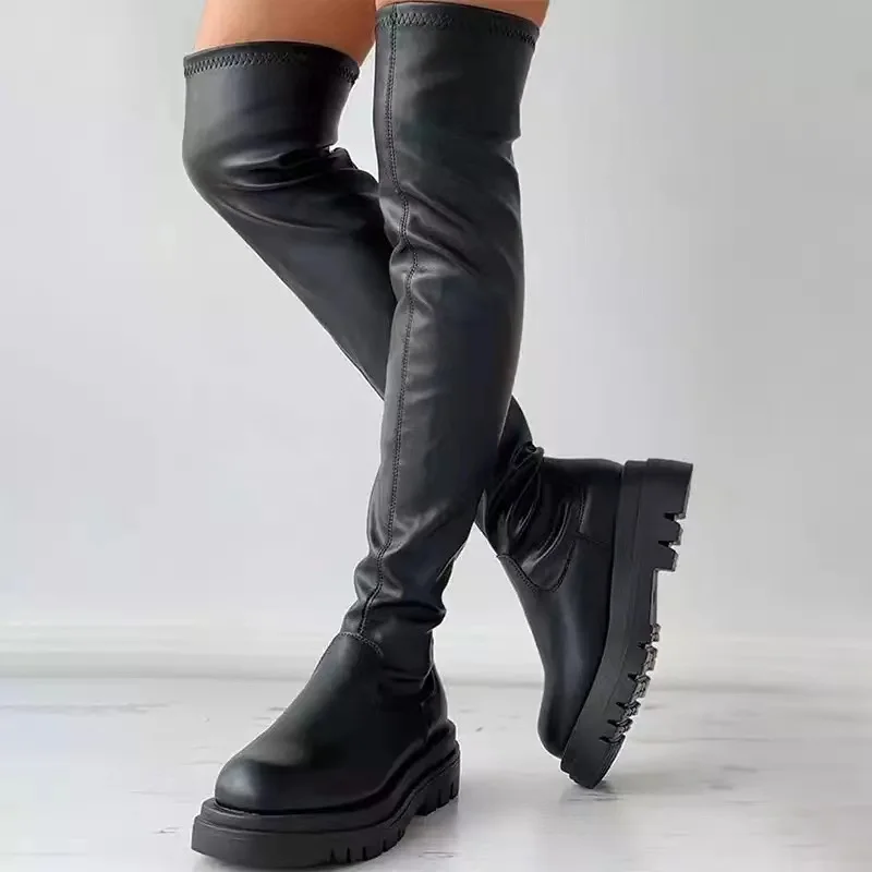 Женские высокие сапоги на платформе, облегающие сапоги выше колена ...