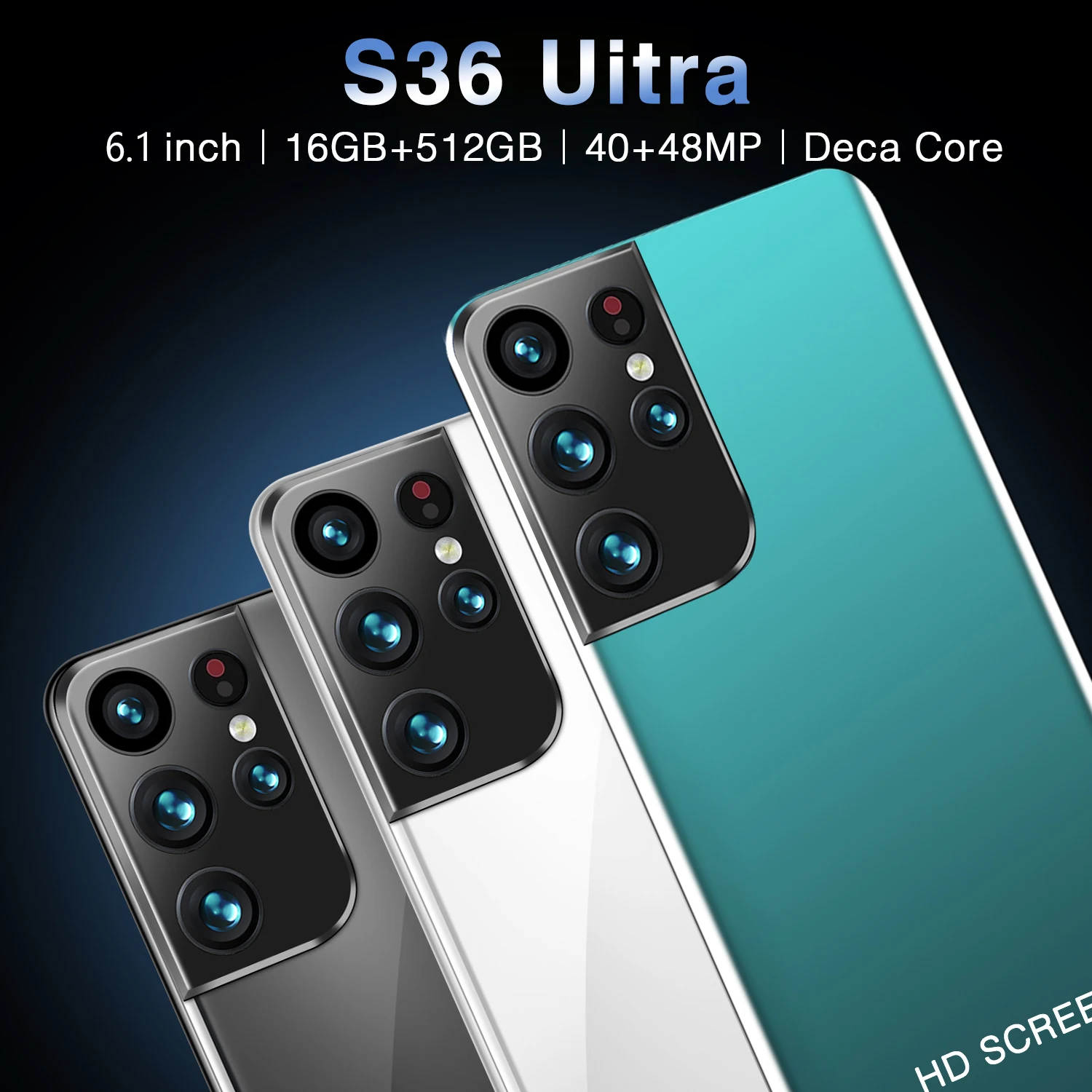 Новый смартфон Galaxy S36 Ultra, 6,1 дюйма, 5600 мАч, разблокированный телефон, телефон с экраном 512 дюйма, 40 Мп + 48 МП, 16 ГБ + Гб, мобильный телефон