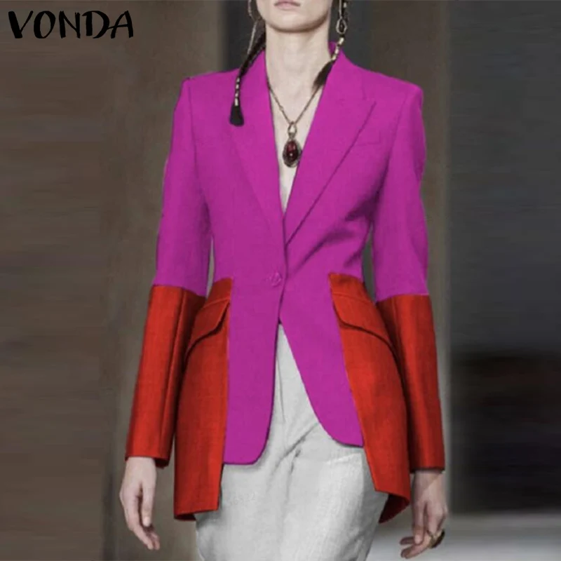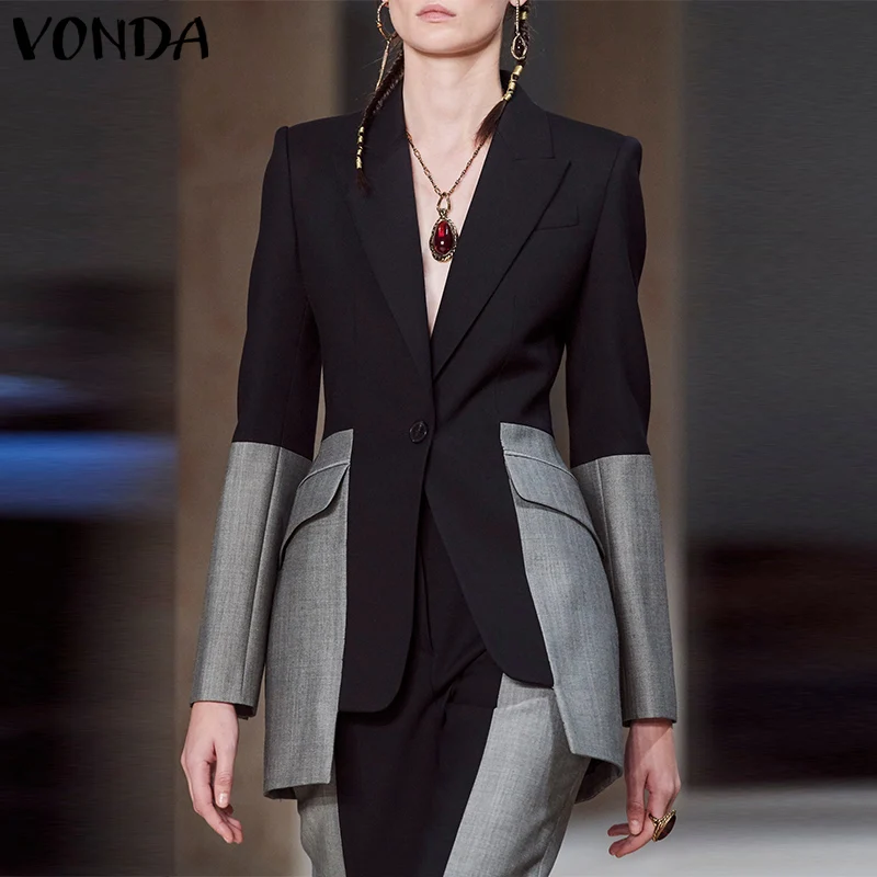 Пиджак VONDA женский осенний, элегантный мешковатый уличный кафтан, повседневный Блейзер на пуговицах с длинным рукавом, пальто оверсайз