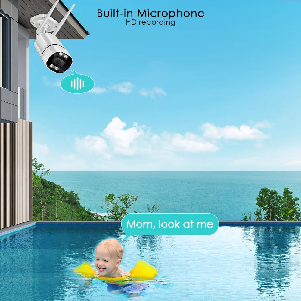 Встроенный микрофон и динамик/настраиваемые новые динамики с громкой громкостью.Вы можете поговорить с любым близким к камере (предупредите кого-то, чтобы он выходил из вашего дома)
