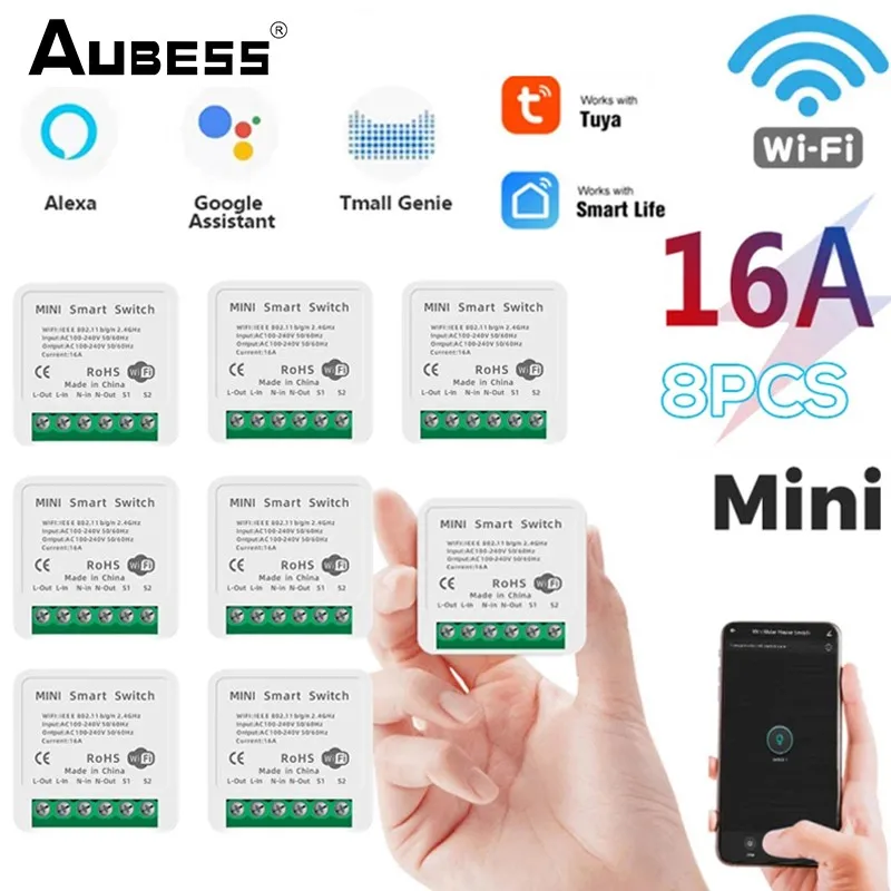 Модуль Wi-Fi AUBESS Tuya Mini 16 А, двухсторонний переключатель с управлением через приложение Smart Life, работает с Alexa и google Home