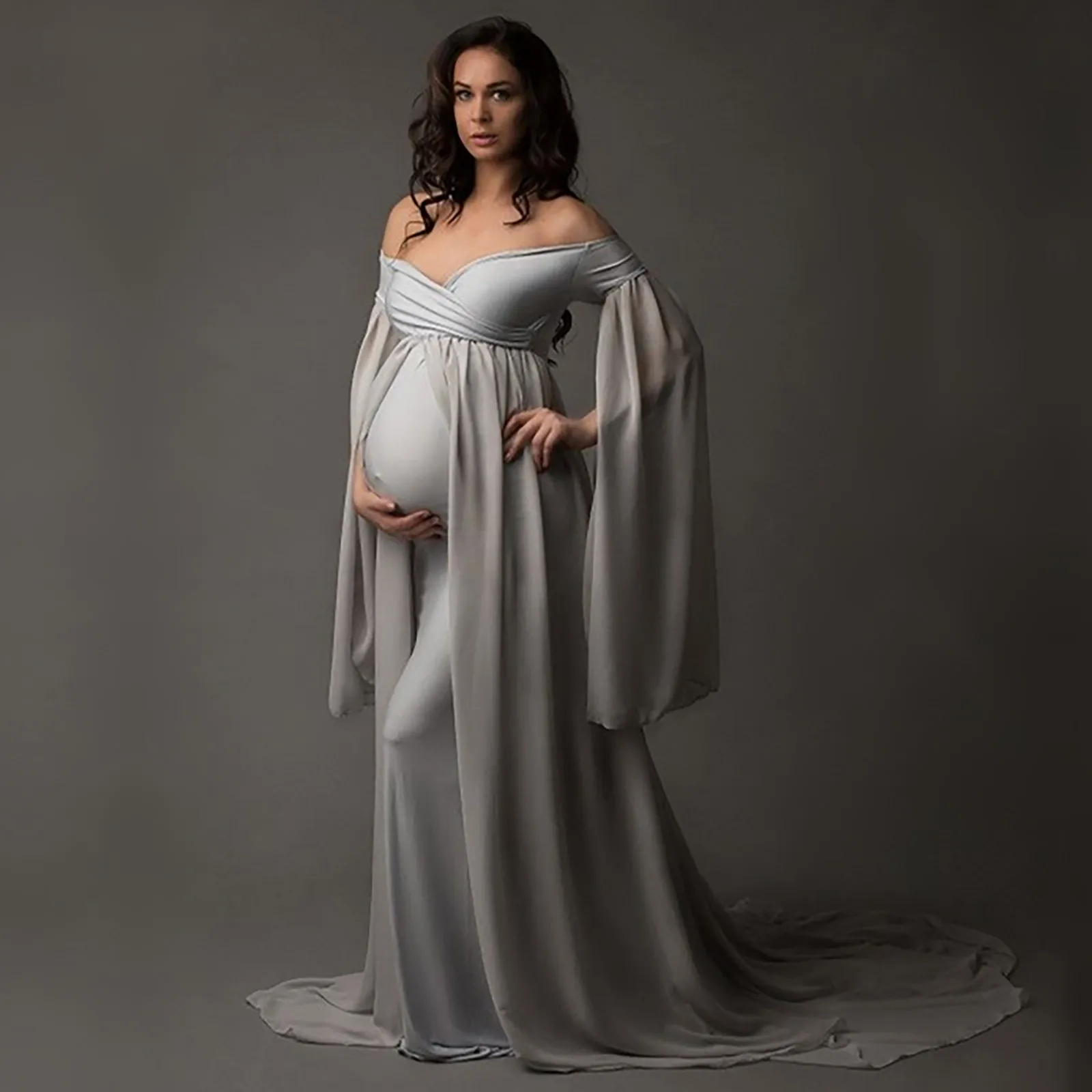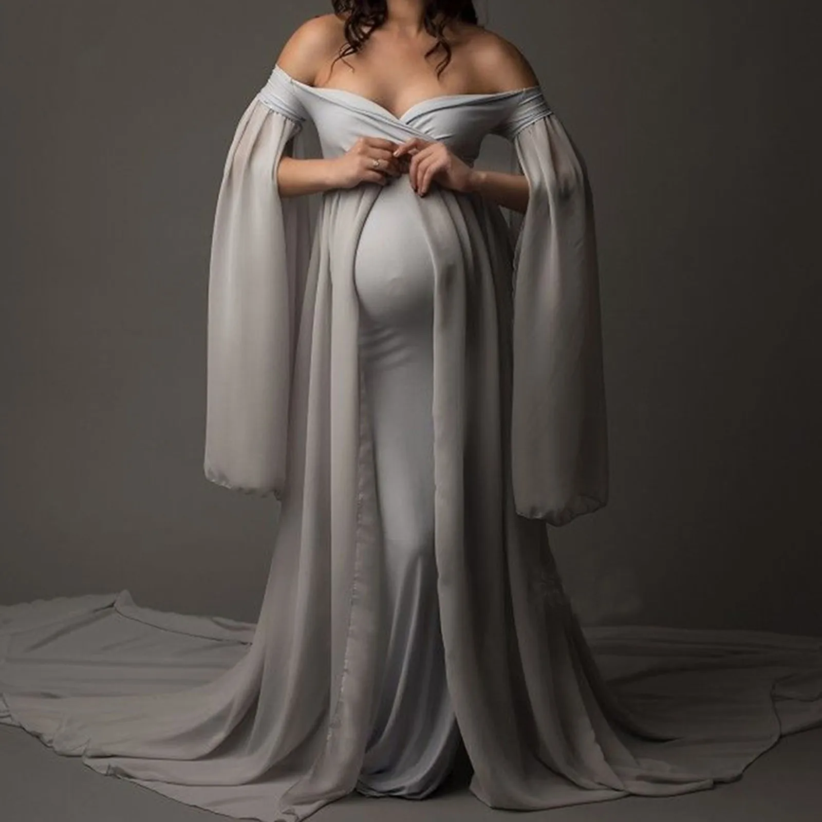 Пол: женщин Сезон: весна, лето, осень Название отделения: Материнство Повод: каждый день, пляж, фотография Материал: полиэстер Длина одежды: длинная Тип узора: однотонный Стиль рукава: длинный рукав Стиль: сексуальный Цвет: Gary Длина платья: длина до пола Как стирать: Ручная стирка в холодной воде, подвешивание или сушка