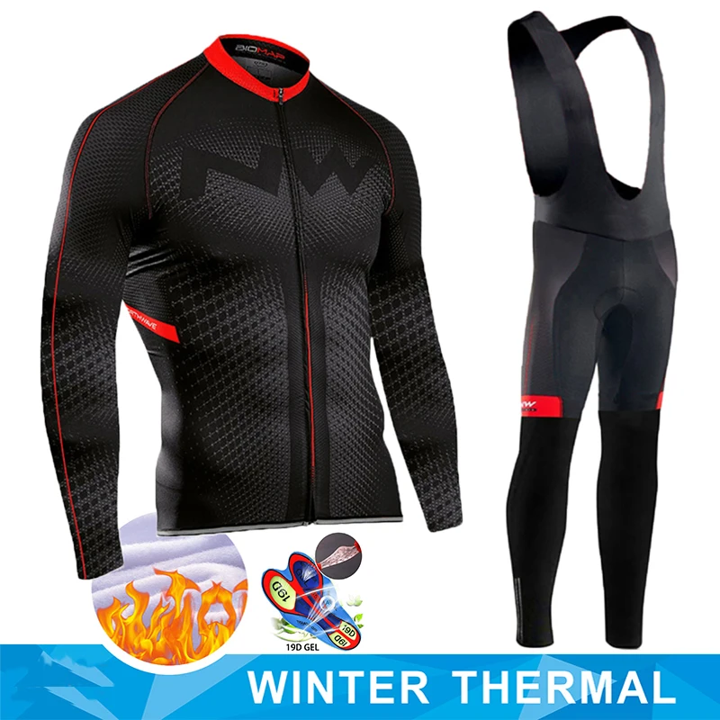 Зимний теплый флисовый комплект трикотажных изделий для езды на вел...