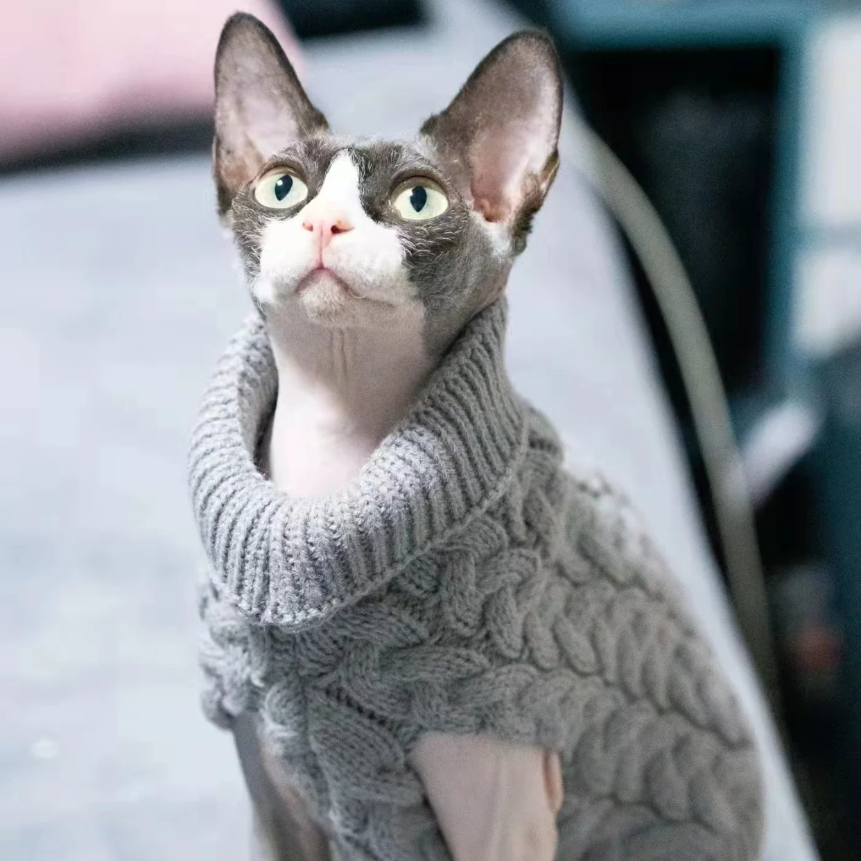 Свитер для домашних животных, одежда для кошек спайнкс, теплый шерстяной свитер на осень и зиму, одежда для маленьких собак