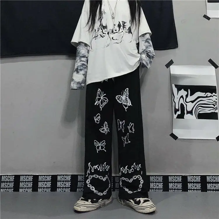Новинка 2021, женские брюки Y2k в стиле Харадзюку, брюки с принтом ...