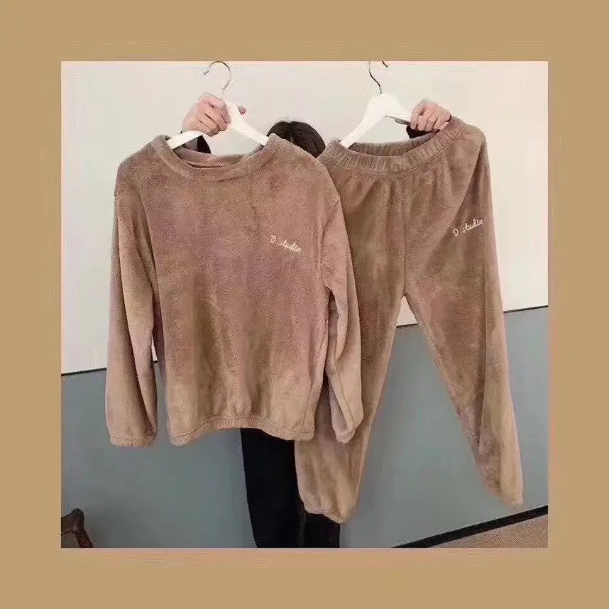 Женская Фланелевая пижама, зимняя Пижама для дома, повседневный весенний теплый бархатный костюм для ванны кораллового цвета, женская одежда для сна, одежда 2022