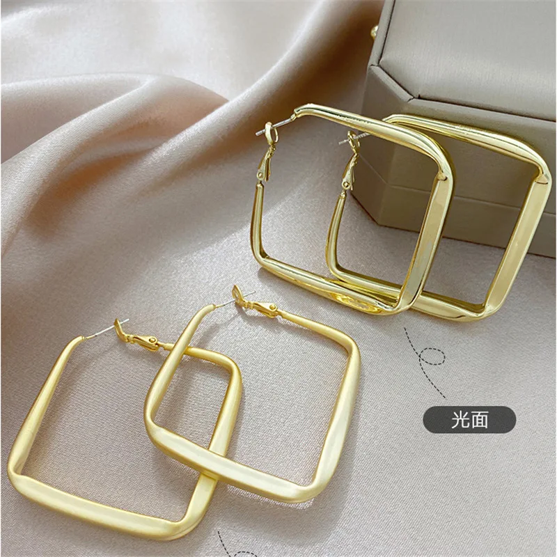 Женские большие геометрические серьги-кольца, большие квадратные се...