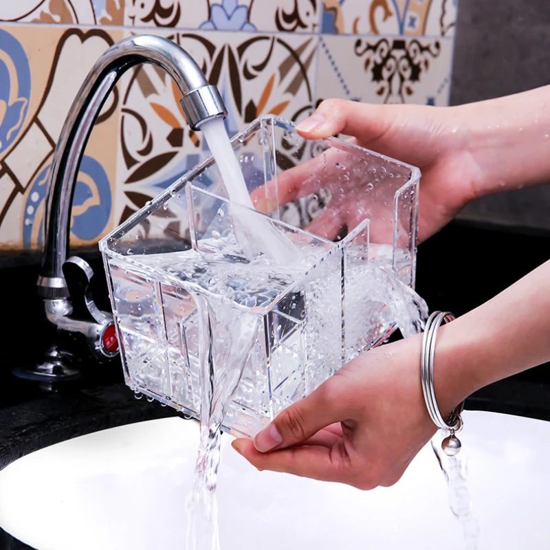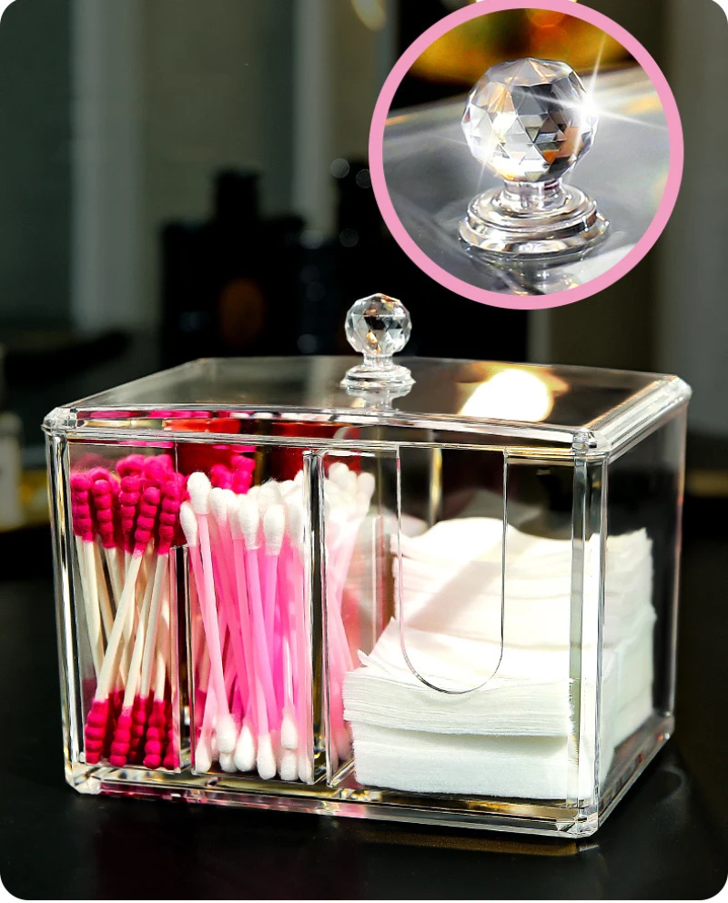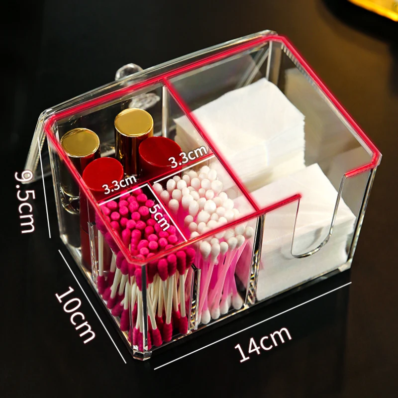 Прозрачный контейнер для макияжа изготовлен из акрила, очень гладкий, прочный и водонепроницаемый. Подходит для женщин и девочек.Диспенсер для ватных дисков меры 14,5x10,5x12,5 см, супер легкая подошва.