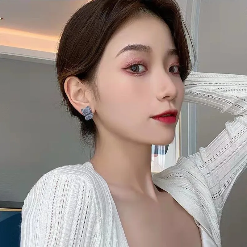 Новые корейские милые забавные плюшевые серьги-гвоздики в виде кошки изящная Серьга для женщин и девушек модные украшения 2021 Brincos