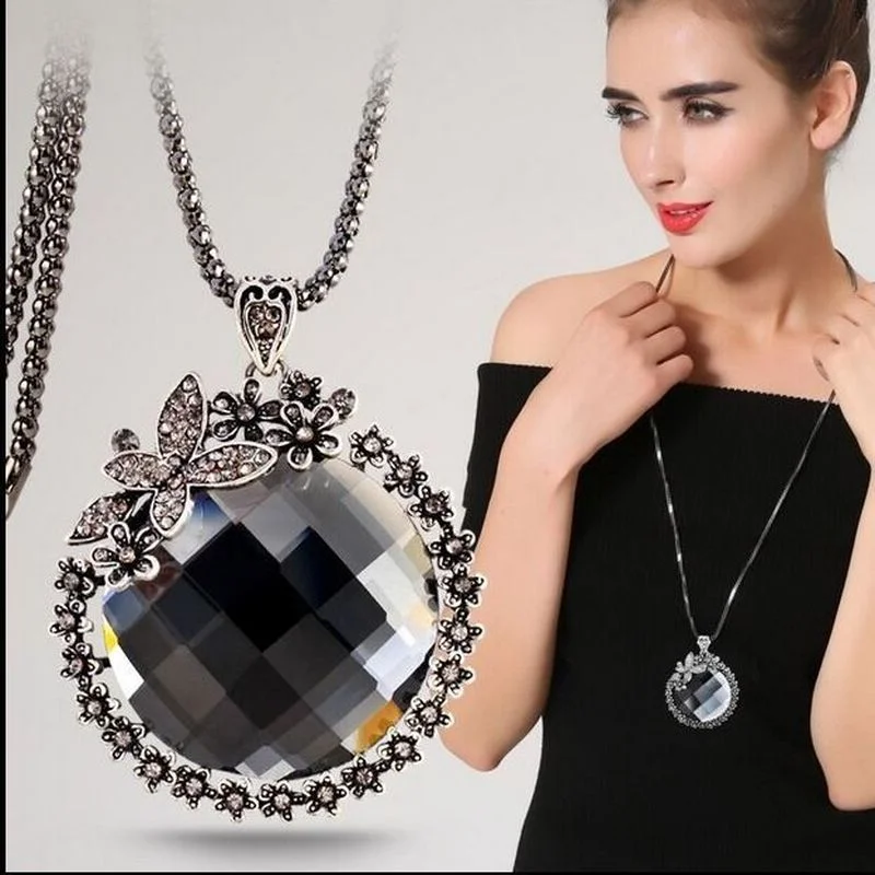 Женское длинное ожерелье с подвеской в виде бабочки, свитера