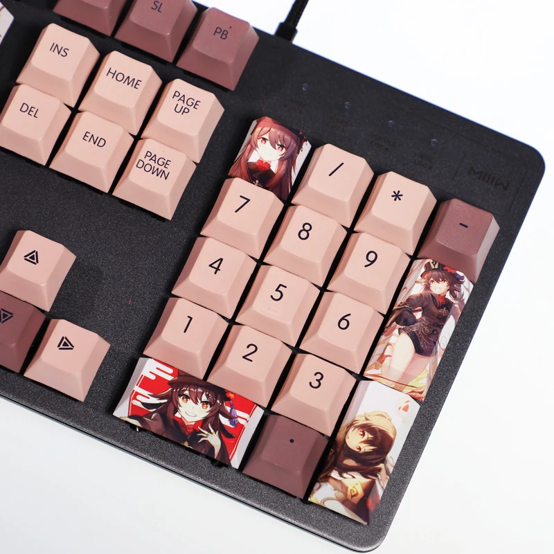 Клавиши клавиатуры Genshin Impact Ху Тао с тематикой шоколадных комиксов pbt, клавиши с двойной подсветкой, набор клавиш Pc Gamer Cherry Profile 6.5u, клавиатура