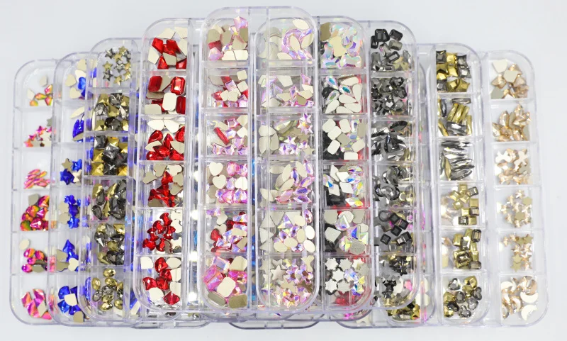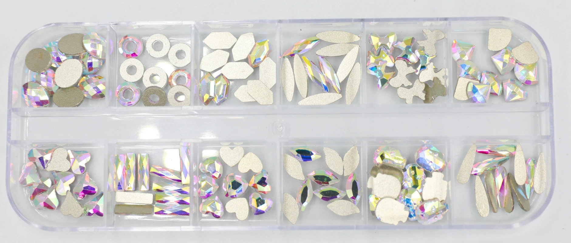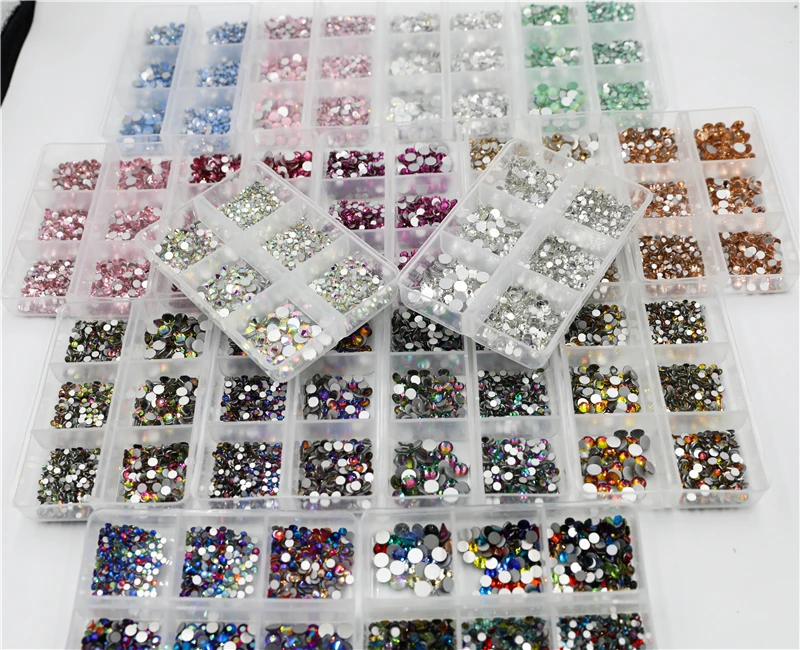 Стразы стеклянные прозрачные с плоской задней поверхностью, 12 размеров, 120 шт.