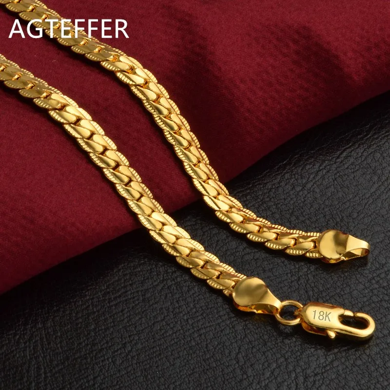 AGTEFFER 925 стерлингового серебра 6 мм Full Боком ожерелье 8/18/20/24 дюймов цепи для женщины и мужчины, модное ювелирное изделие для помолвки, свадьбы