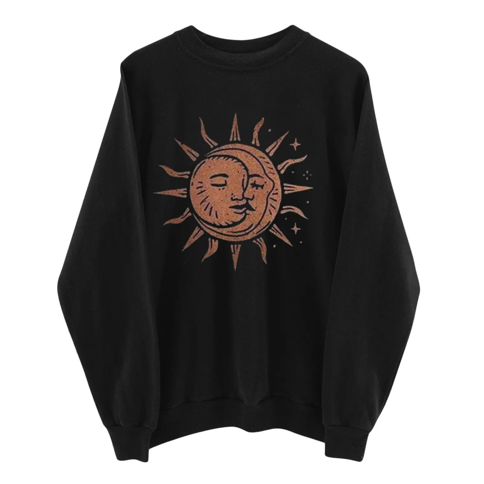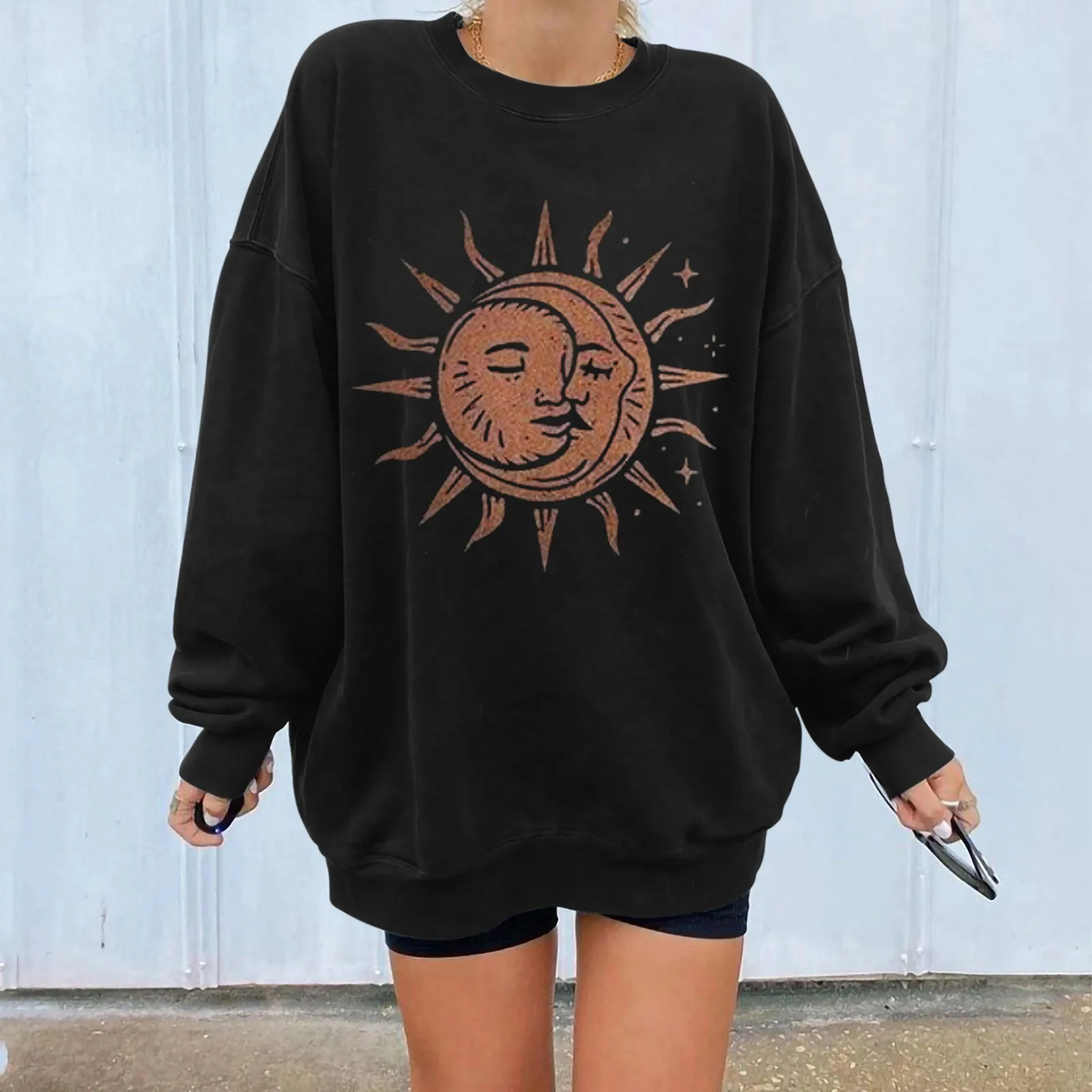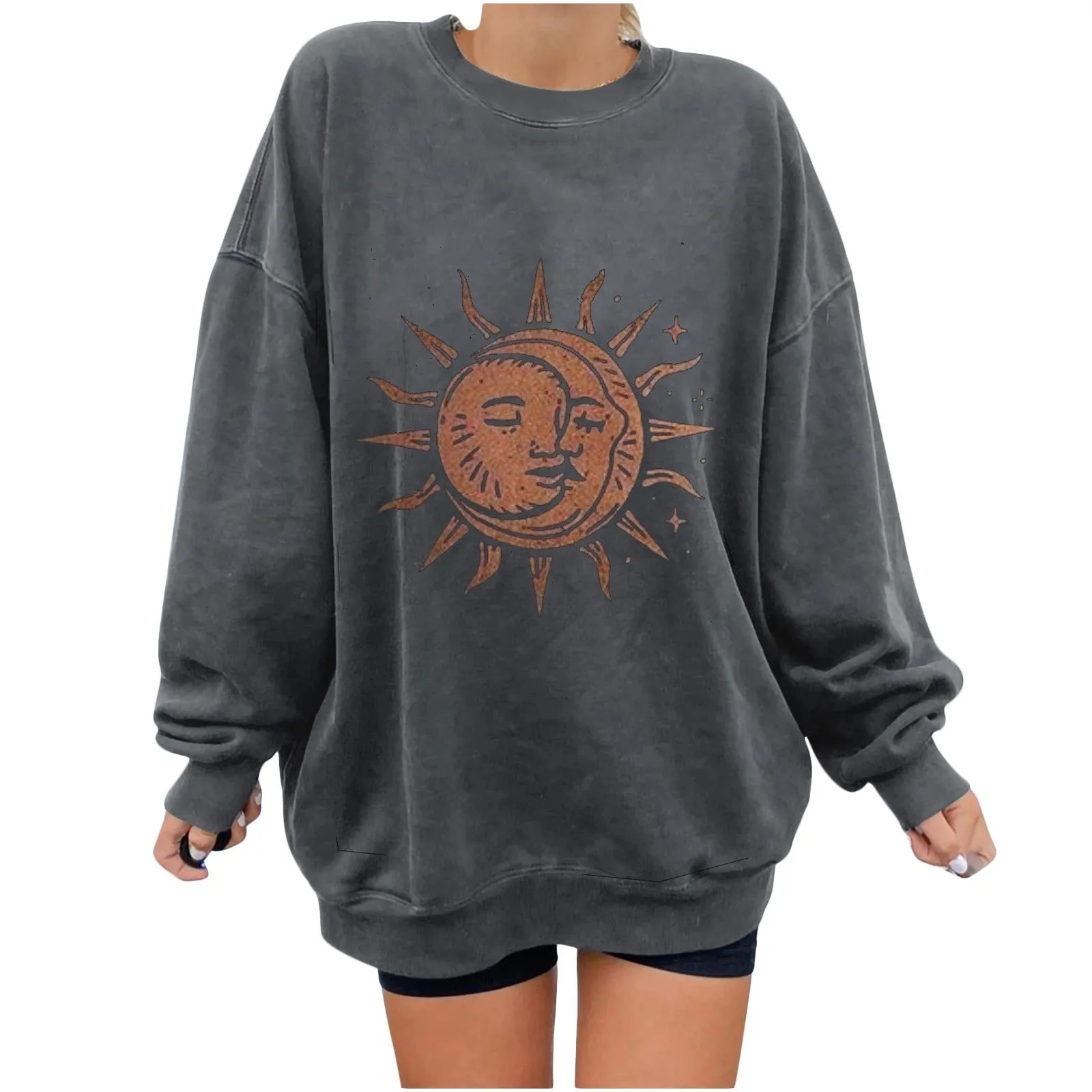 Пуловер женский, Свитшот оверсайз с капюшоном от Солнца и Луны, зимние винтажные готические женские Топы в стиле Харадзюку, женские толстовки