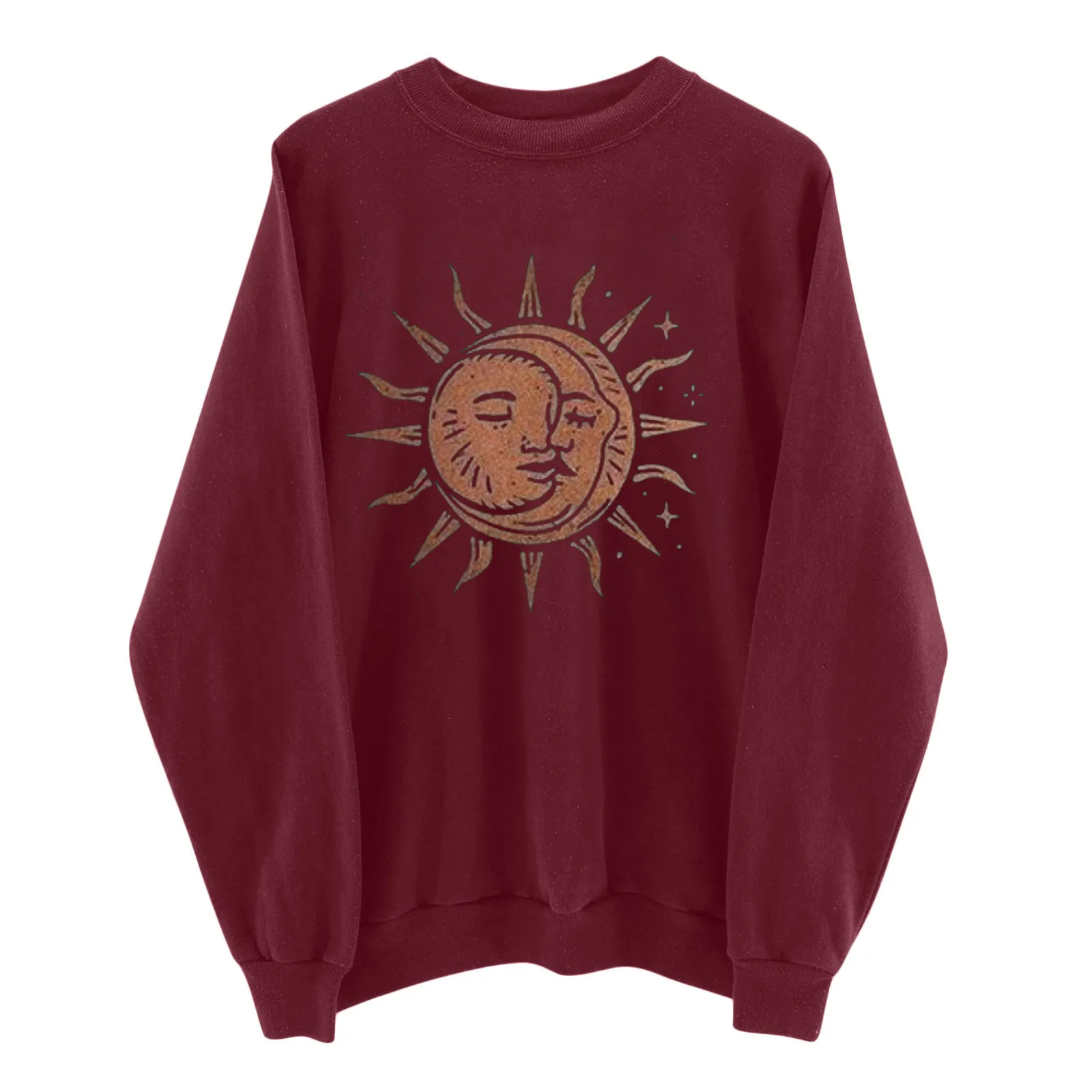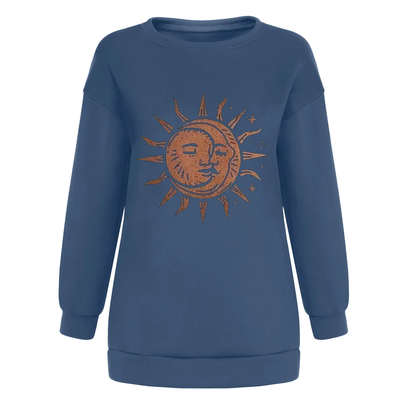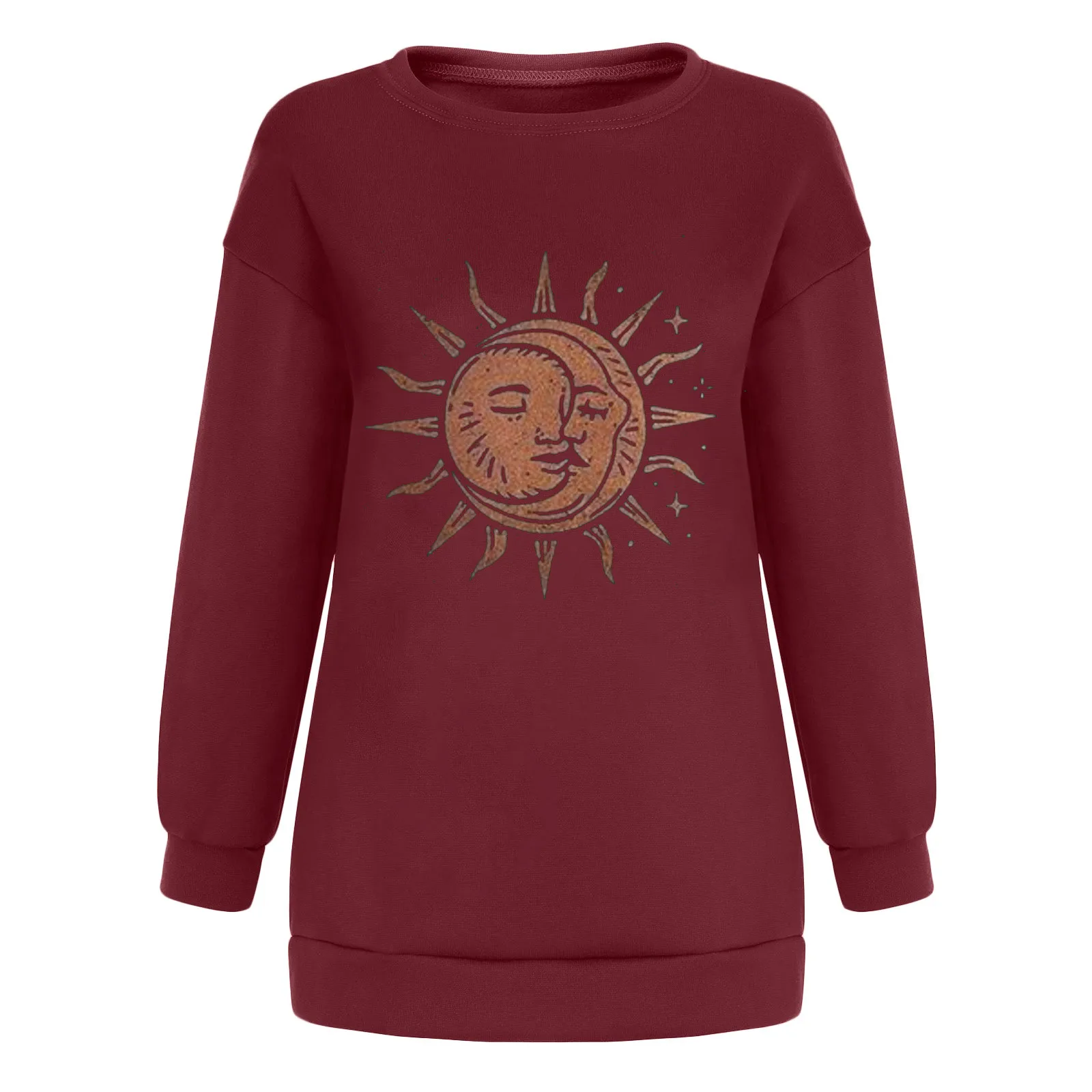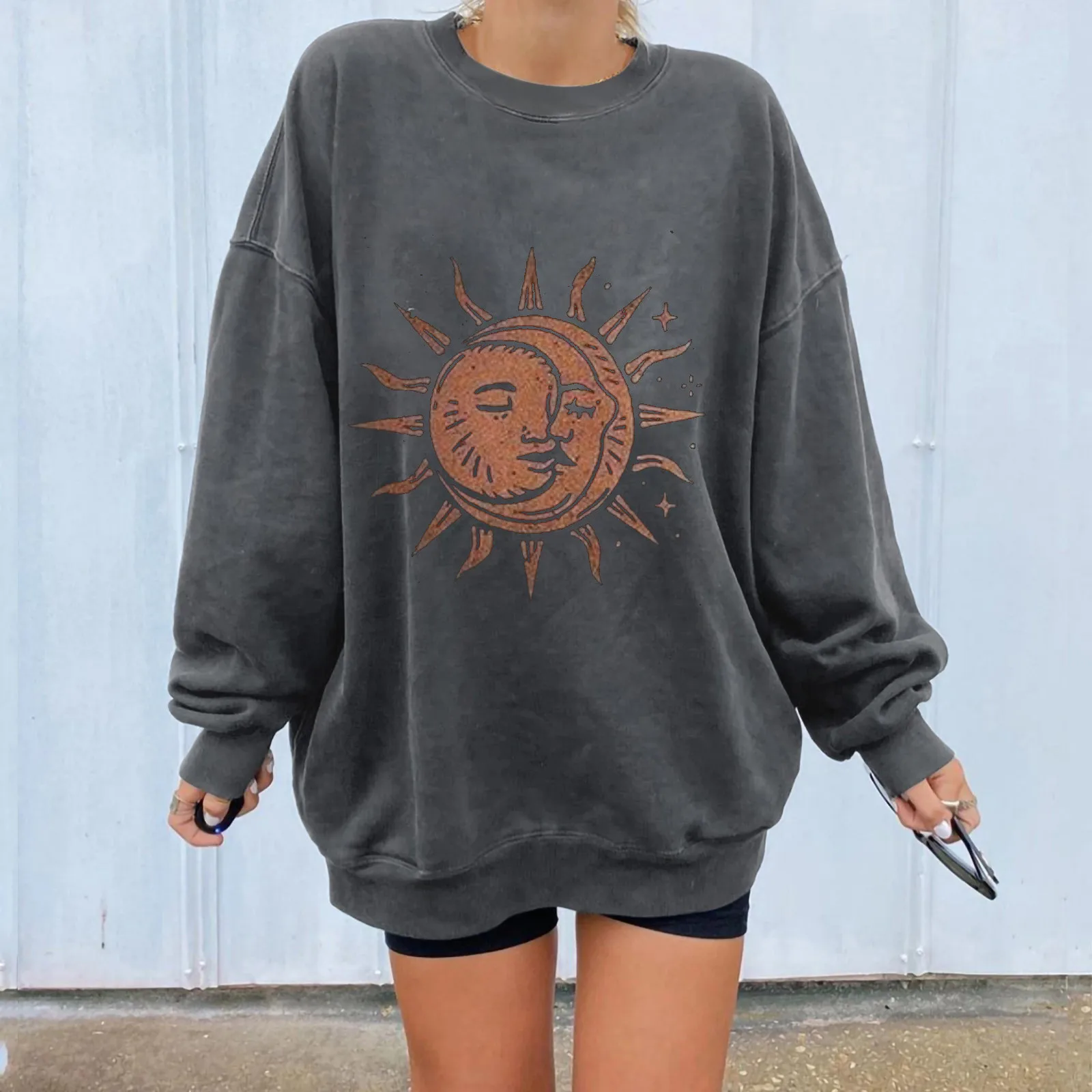 Пуловер женский, Свитшот оверсайз с капюшоном от Солнца и Луны, зимние винтажные готические женские Топы в стиле Харадзюку, женские толстовки