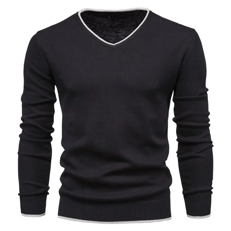 Мужские свитера, Мужской пуловер, Осенний хлопковый облегающий свитер с V-образным вырезом, джемперы, Мужская трикотажная одежда для мальчиков, трикотажная одежда в простом стиле размером 4XL