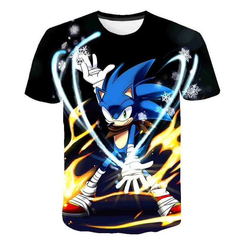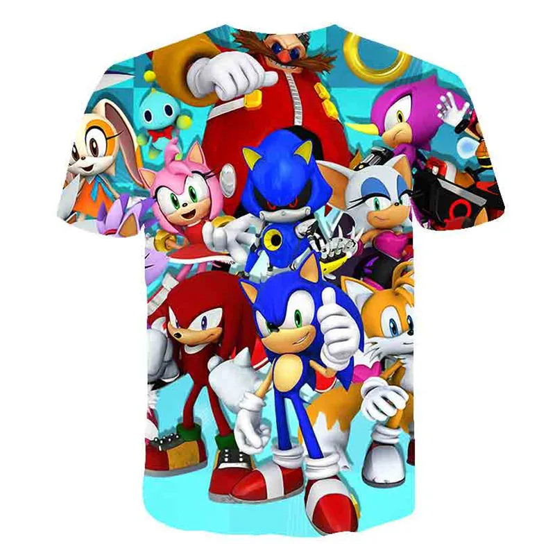 Суперкрутая футболка для мальчиков с принтом Sonics, детские футболки в стиле Харадзюку, в стиле хип-хоп, с 3D рисунком, летние детские топы с коротким рукавом для девочек-подростков