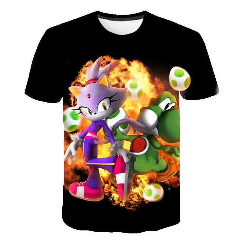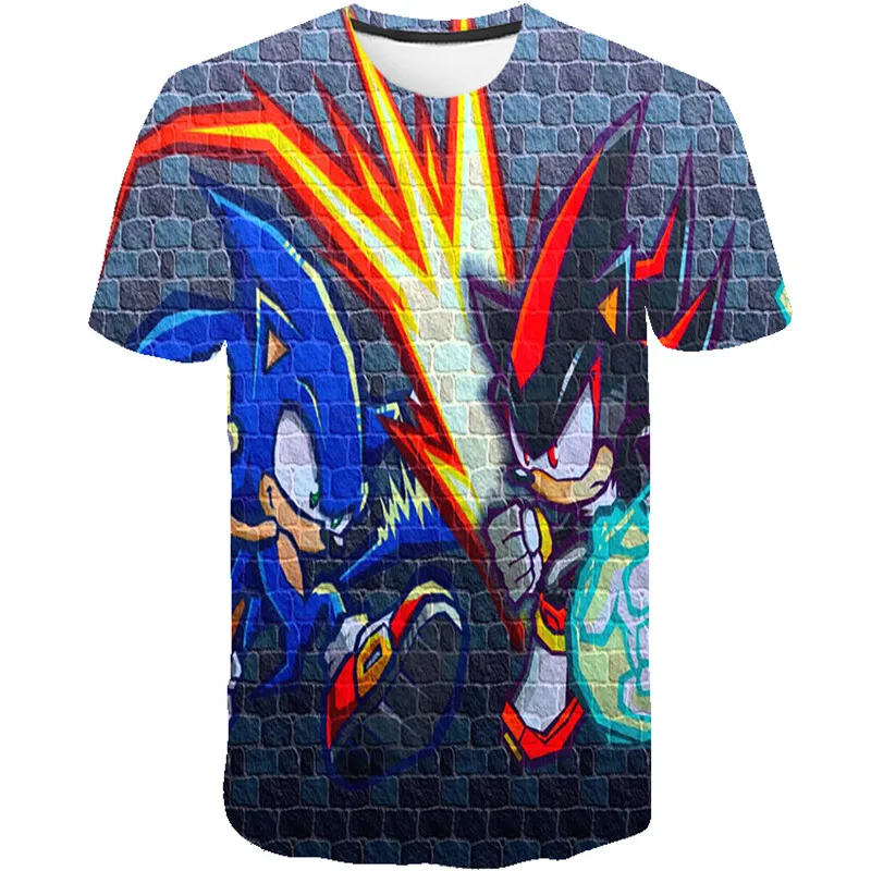 Красивые рубашки супер sonic с принтом Одежда для девочек 3D смешны...