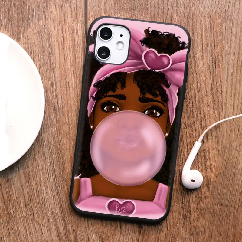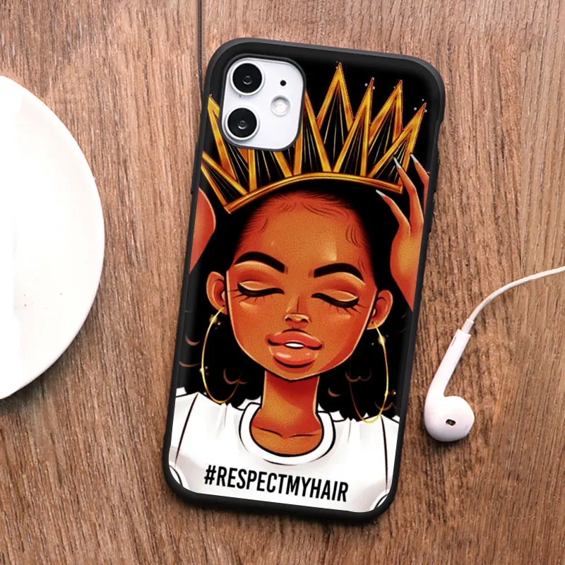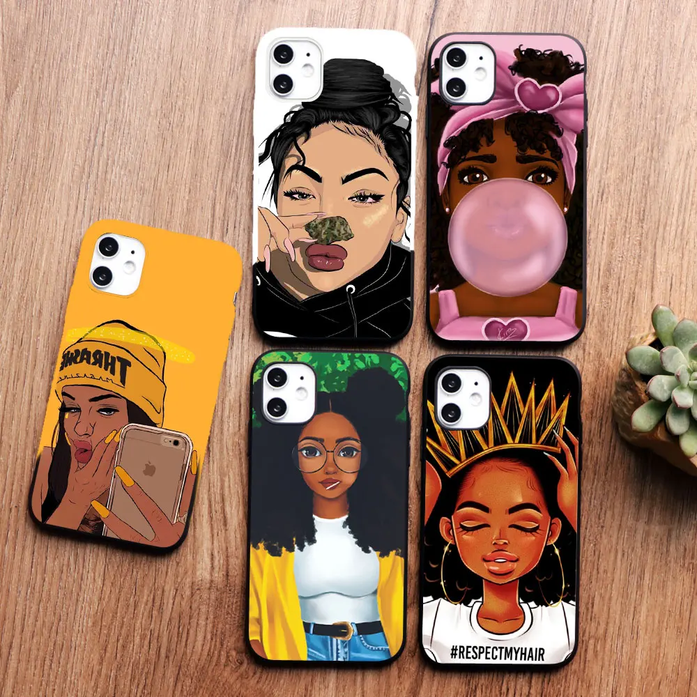 PUNQZY Черный Девушка волшебный меланин поппин королева чехол для телефона iPhone 13 pro max 12 Pro max 11PRO MAX 6 7 8 Plus XR XS MAX ТПУ чехол