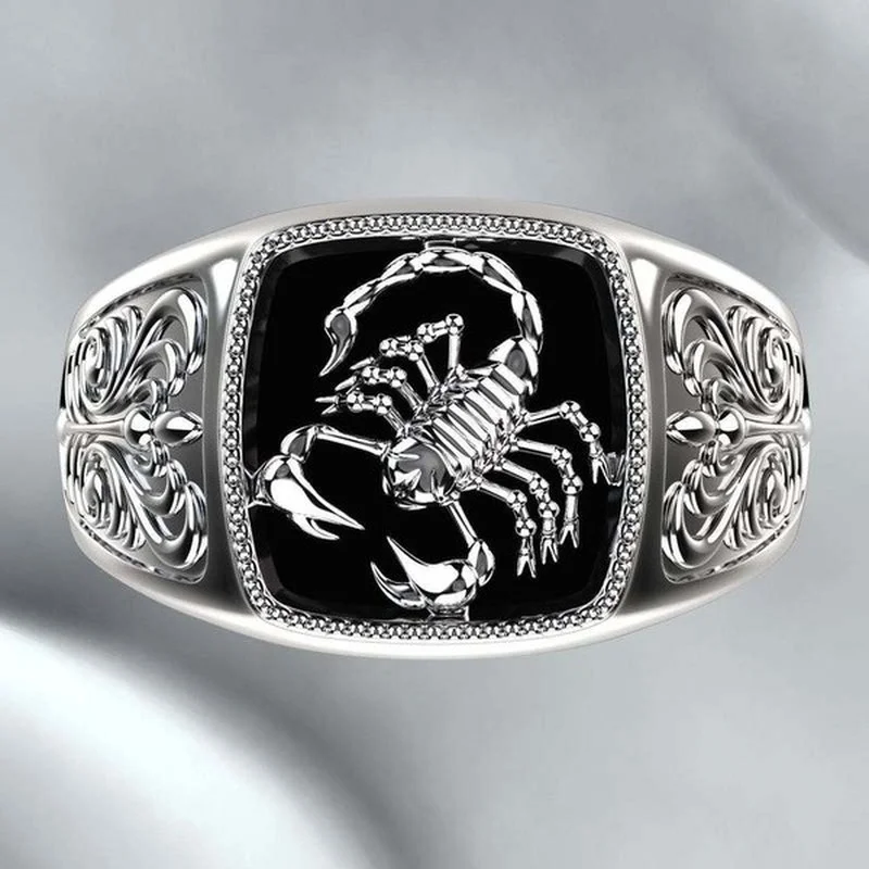 Мужское кольцо с тиснением в виде скорпиона, посеребренное украшени...