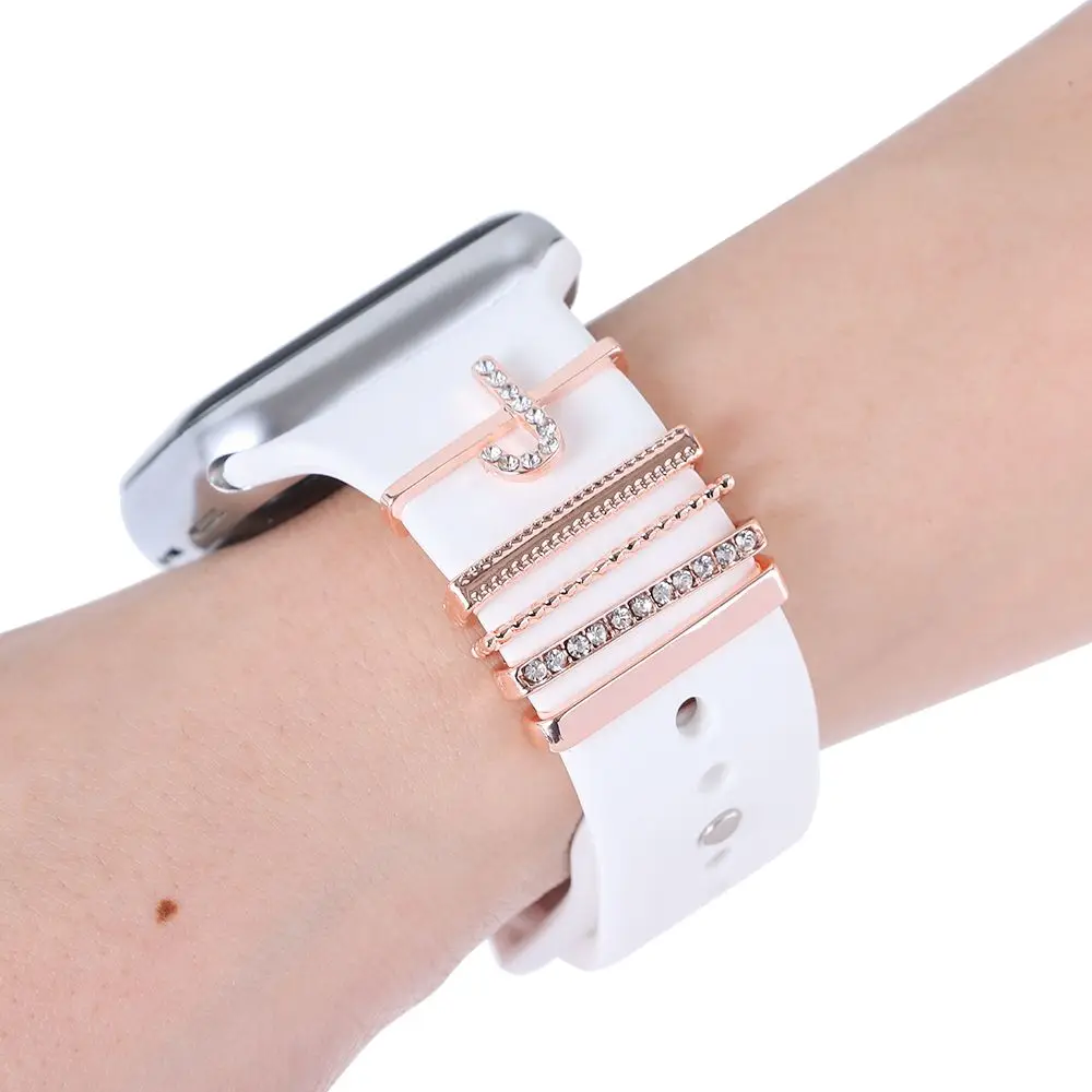 Металлический браслет с алмазным алфавитом, брошь для ногтей, ремешок для наручных часов, ремешок, украшение для браслета iwatch, украшение для умных часов
