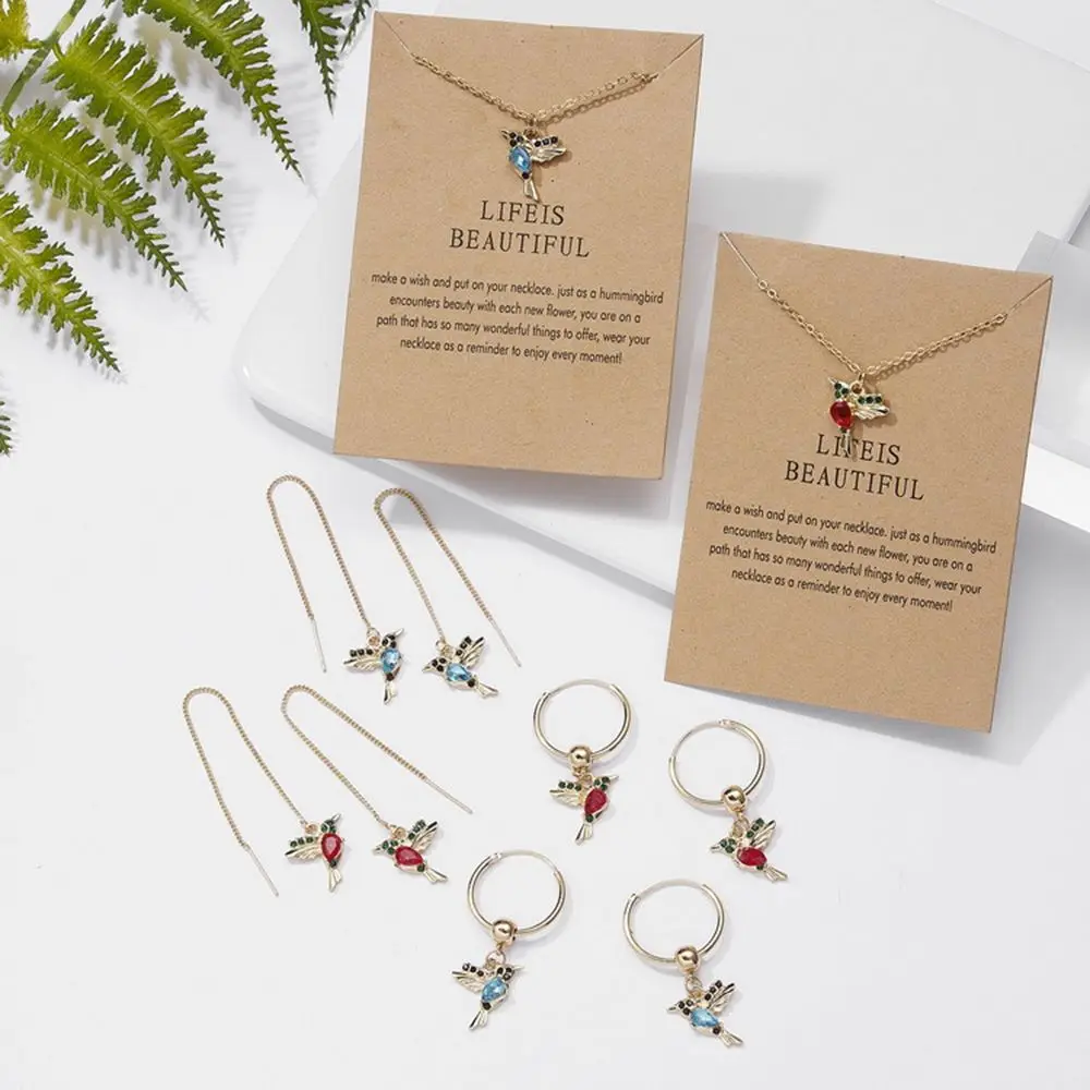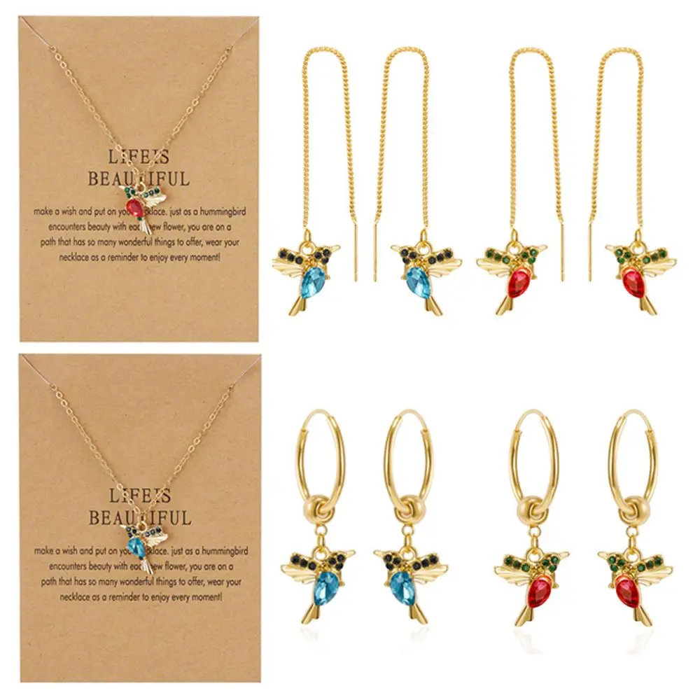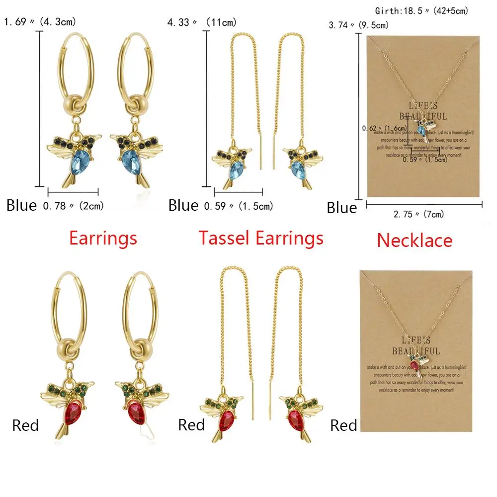 Модное ожерелье с длинной кисточкой красного и синего цвета в виде Колибри с животным дизайном, висячие серьги с кристаллами и птицами
