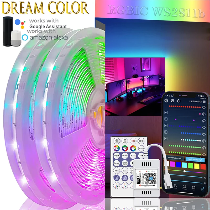 Светодиодная лента RGBIC WS2813b Водонепроницаемый WiFi Alexa умные диодные игровые огни гибкое управление применимое Рождественское украшение или подарок