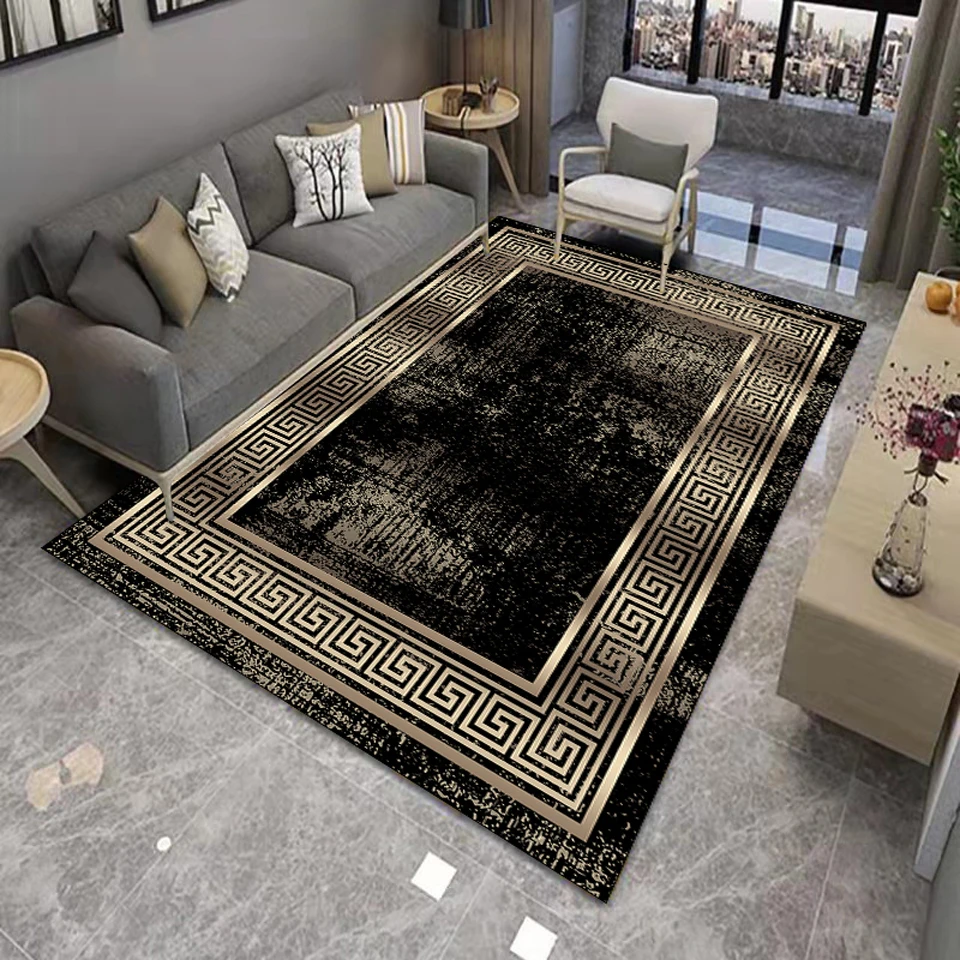 Черный и золотой ковер, винтажный абстрактный грязный эффект, коврики с греческой рамкой и ковры для дома, гостиной, прихожей, мягкие коврики