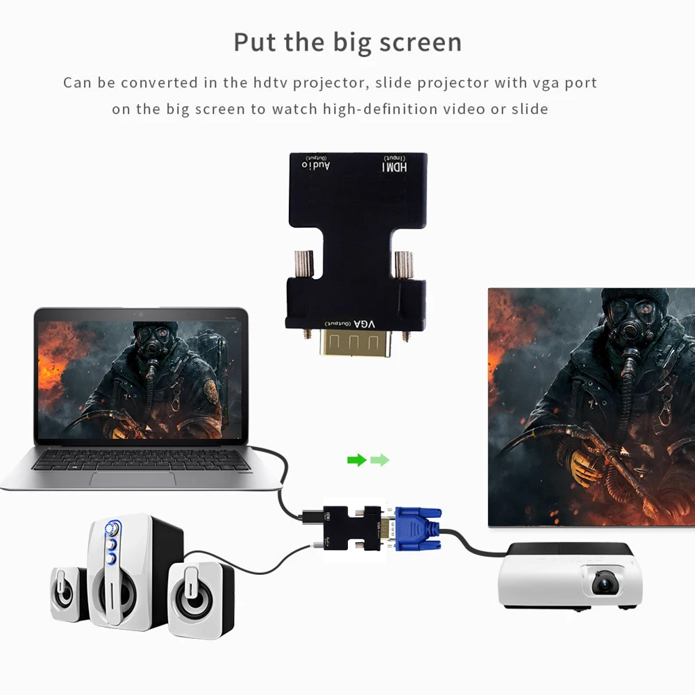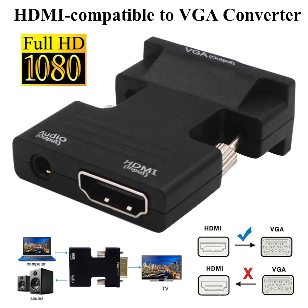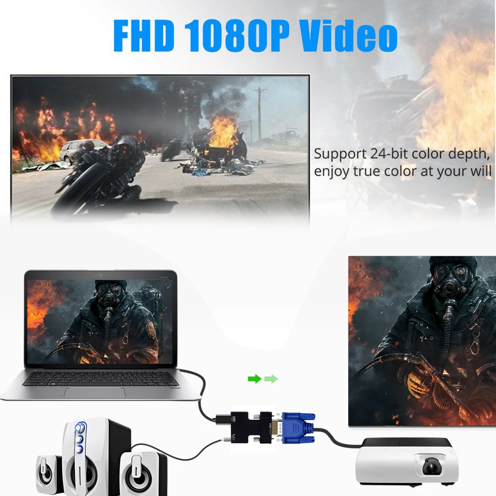 Преобразователь 1080P HD HDMI-совместимый с женским и мужским разъемами VGA, преобразователь цифрового сигнала в аналоговый, адаптер для ПК, ноутбука, ТВ-приставки, проектора