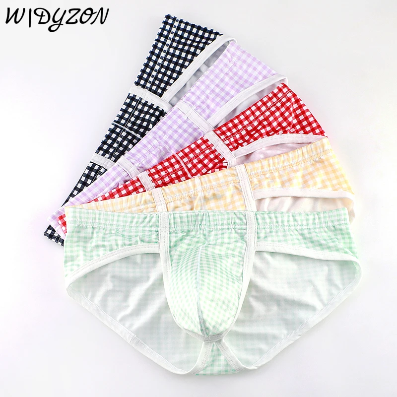 Трусы-бикини мужские в клетку, пикантное нижнее белье, U-образный мешочек, дышащие брифы, джоки, шорты, гей-трусы