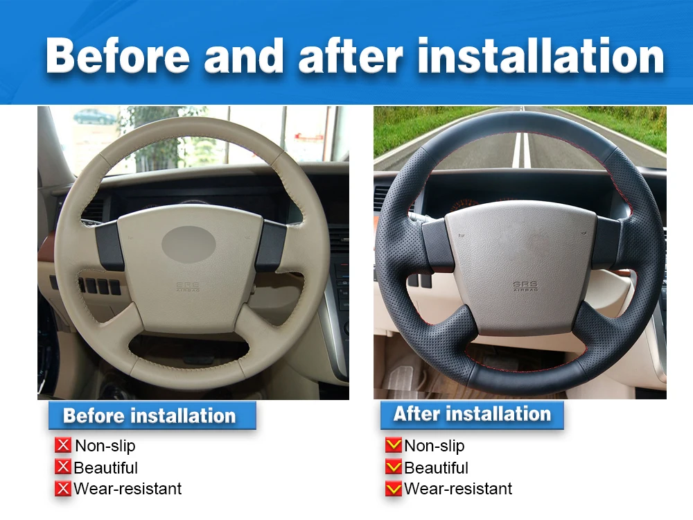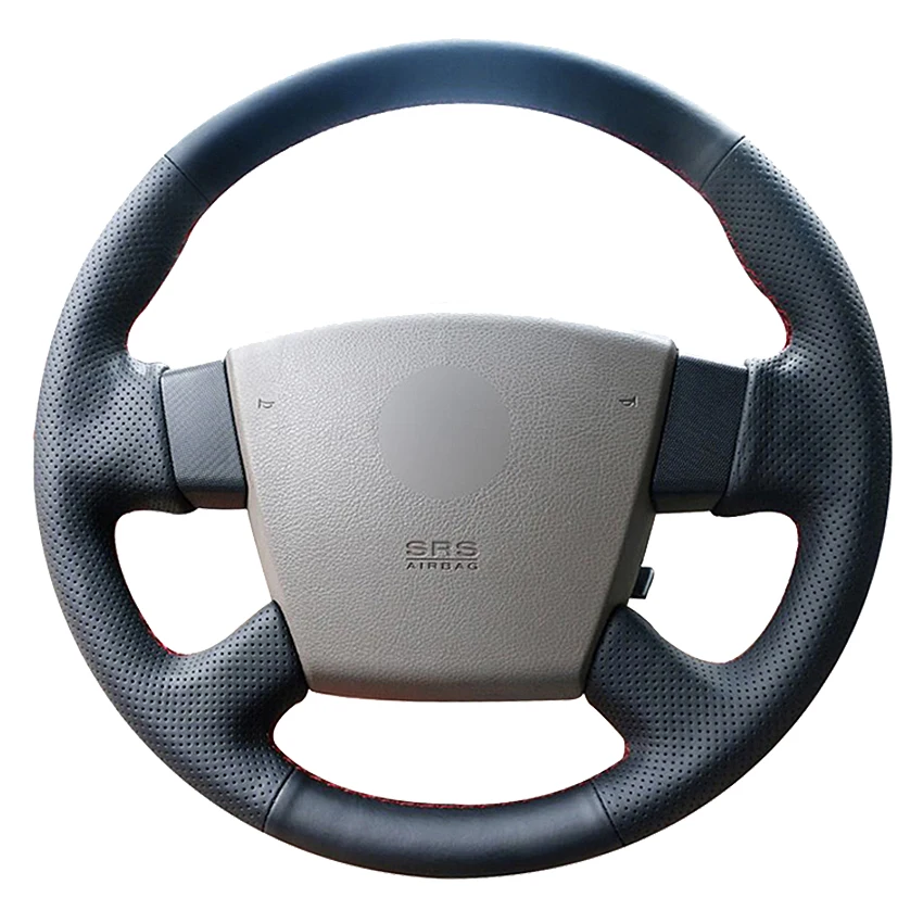Черная искусственная кожа ручная строчка чехол рулевого колеса авто...