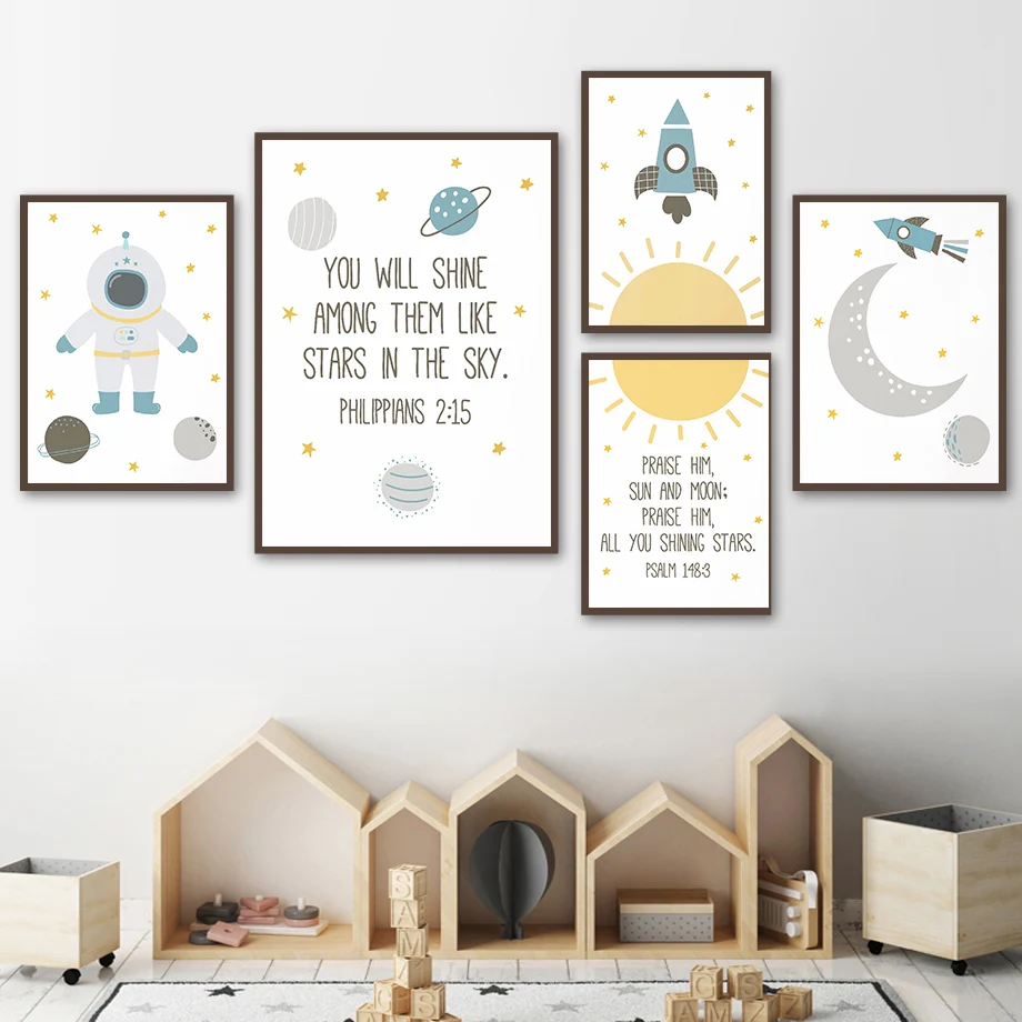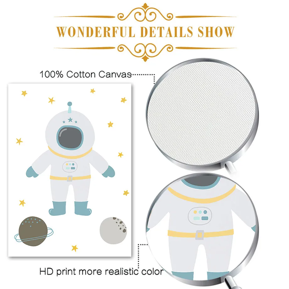 Астронавт Космос планета Детская Мультфильм стена искусство холст живопись скандинавские плакаты и принты стены картины дети мальчик Детская комната Декор
