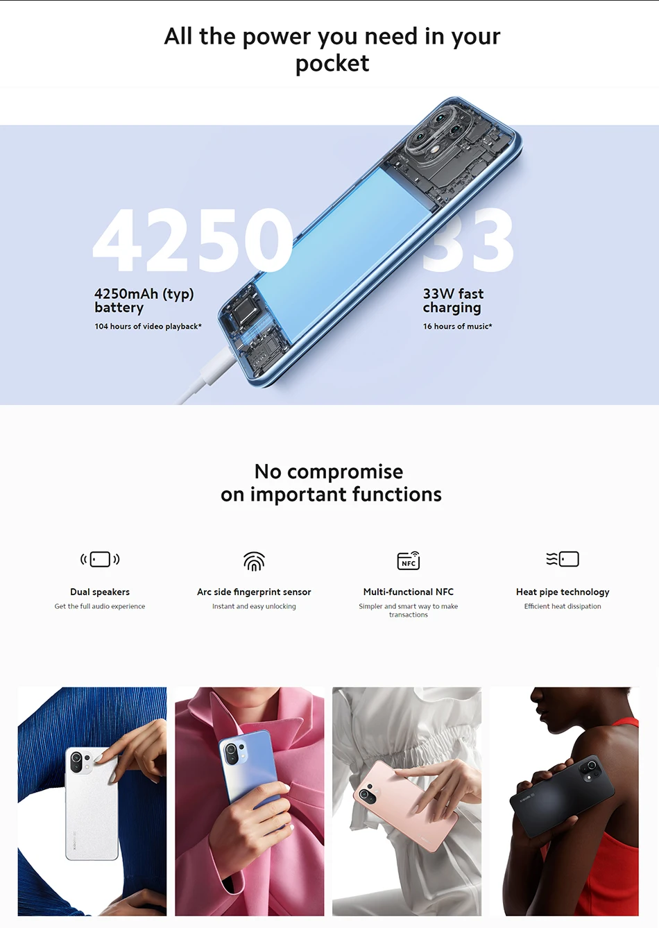 Глобальная версия смартфона Mi 11 Lite 5G NE 128G256G Snapdragon 778G AMOLED 64 -мегапиксельная батарея 4250MAH с NFC