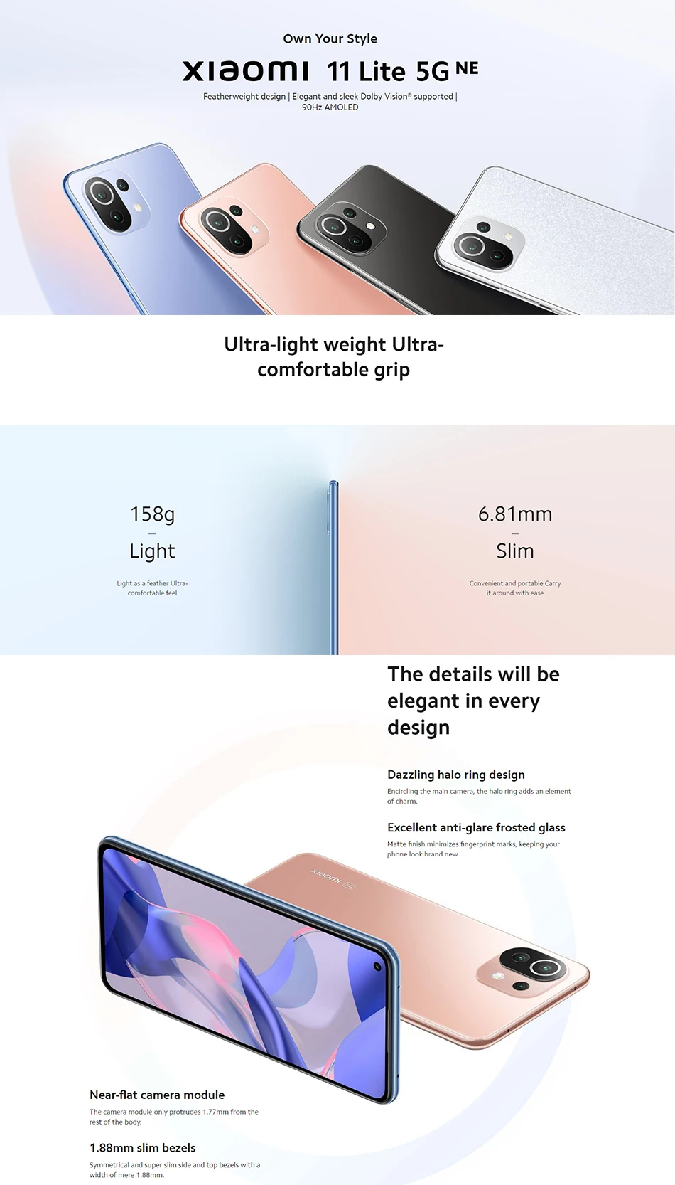 Смартфон Xiaomi 11 Lite глобальная версия дюйма, 6 ГБ8 ГБ, 5G ГБ128...