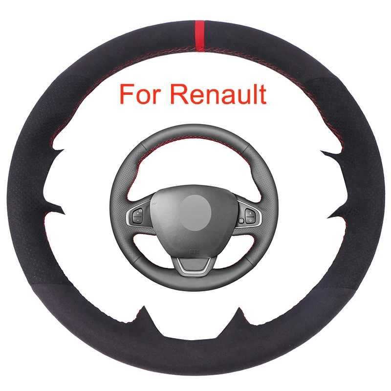 Чехол на руль автомобиля под заказ для Renault Clio 4 (IV) Kaptur Captur сделай сам, черная замшевая Кожаная оплетка для рулевого колеса