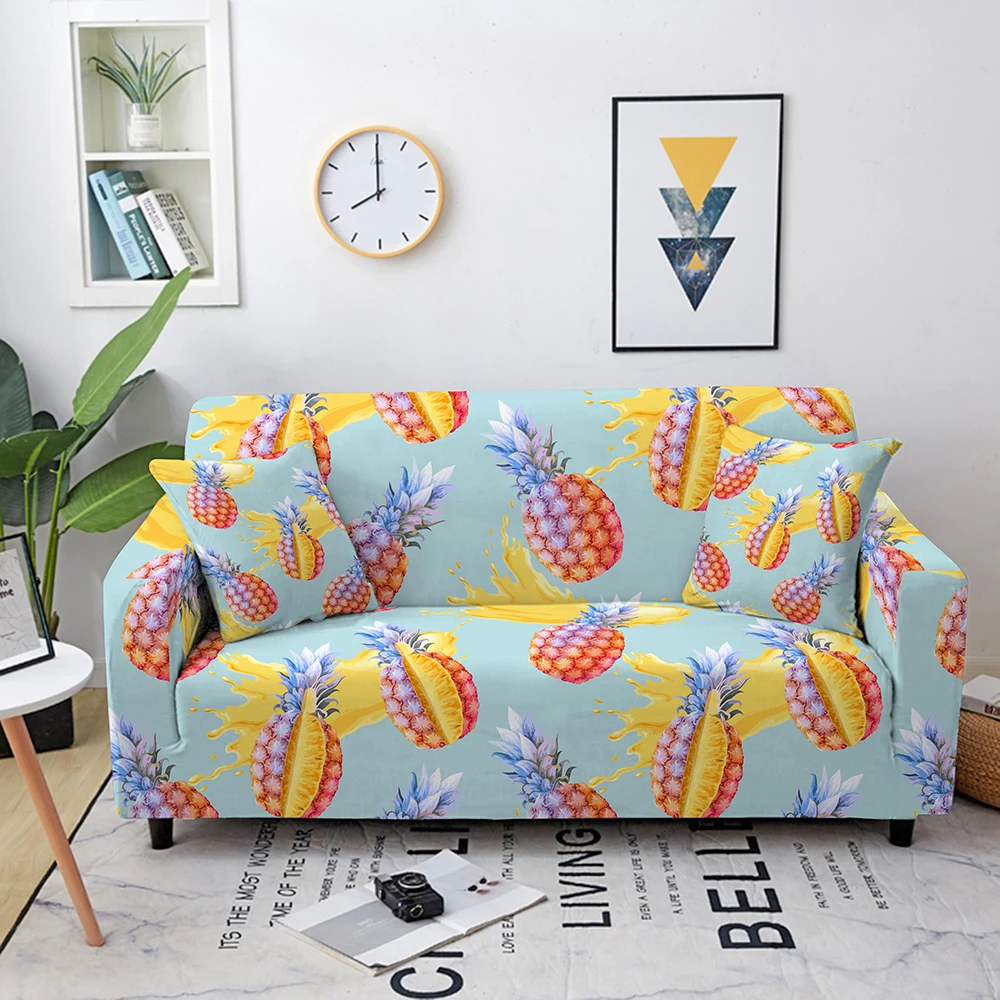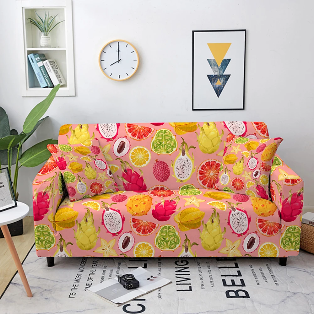 Эластичные Чехлы для дивана с цветочным принтом для гостиной, чехол для кушетки с фруктовым узором, угловой чехол для дивана L-образной формы, длинный Чехол для 1-4 местного дивана