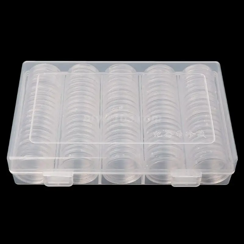 100 держатель для монет в капсулах, круглая коробка 27 мм, пластиковый органайзер для хранения предметов для коллекционирования