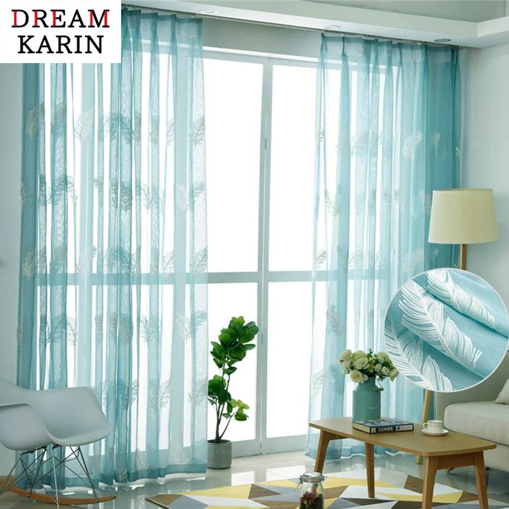 DK синие вышитые перья белые прозрачные шторы для гостиной вуаль тюлевые шторы для окна спальни готовые занавески панели