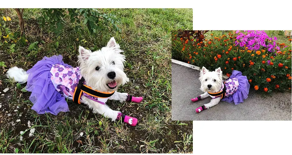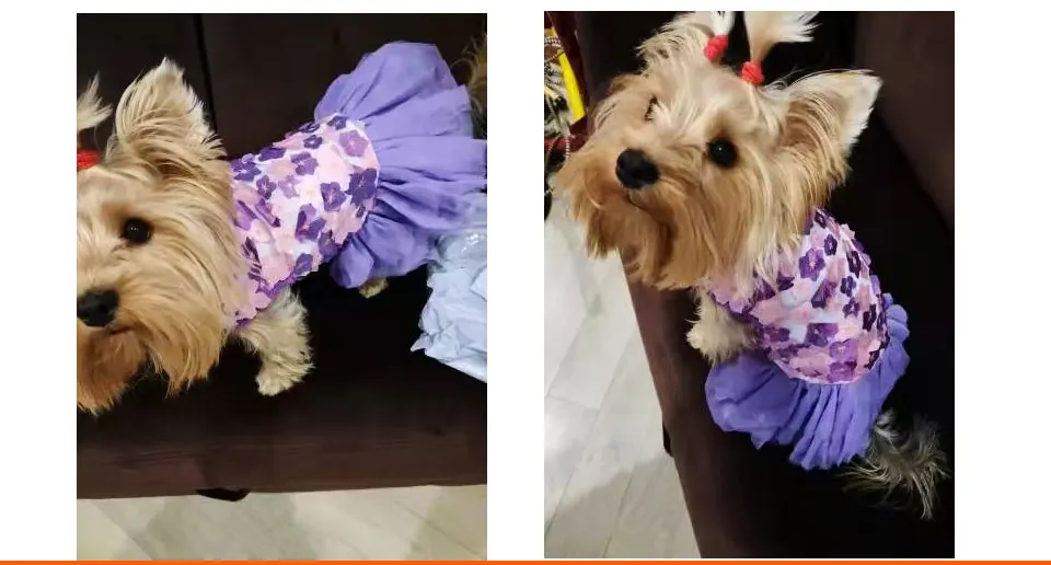 1. Изготовлено из шифона, это платье удобное и дышащее2. Цветочный узор украшения Забавный и привлекательный, делая ваших собак более красивыми и модными.3. С изысканным ремеслом и прочным материалом, это платье является прочным и моющимся, имеет длительный срок службы.4. Есть достаточно вариантов размера, и вы можете выбрать подходящий для вашей собаки.