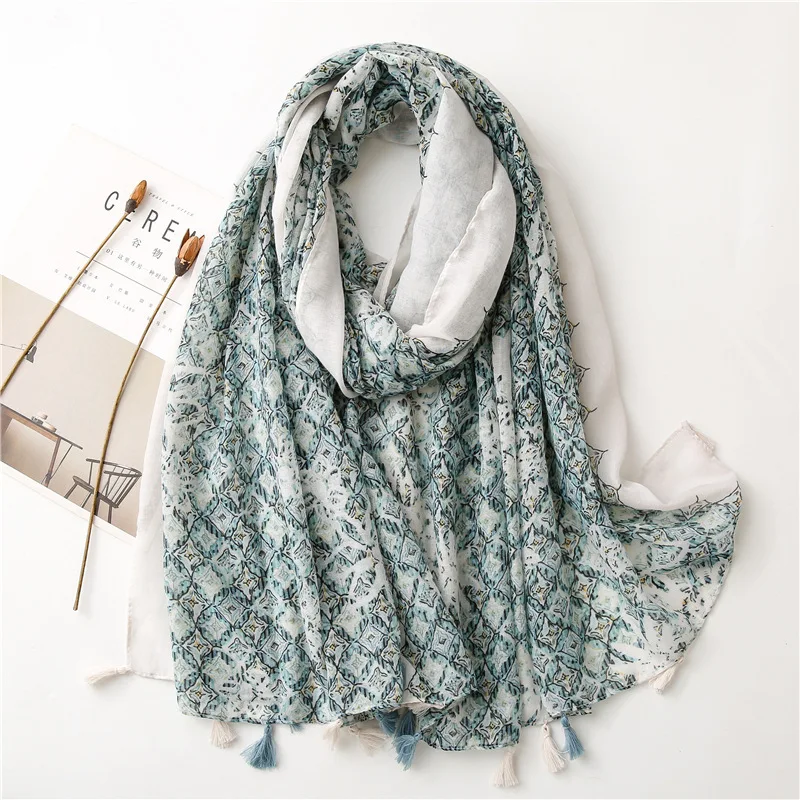 Роскошный брендовый хлопковый шарф, Женские Большие шали, дизайнерский хиджаб, шарфы с кисточками и принтом, Женский бриллиантовый парео
