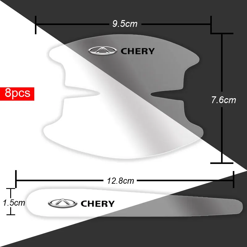8 шт., прозрачные наклейки на дверные ручки автомобиля Chery A3, A5, A13, M11, E5, Tiggo, Tengo, Fulwin 3, 5